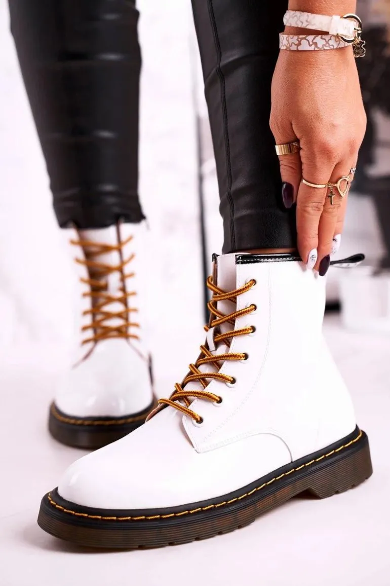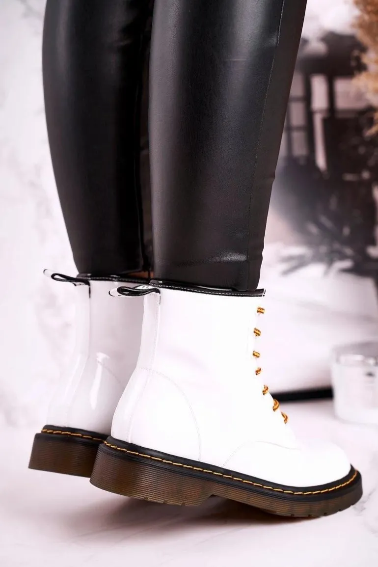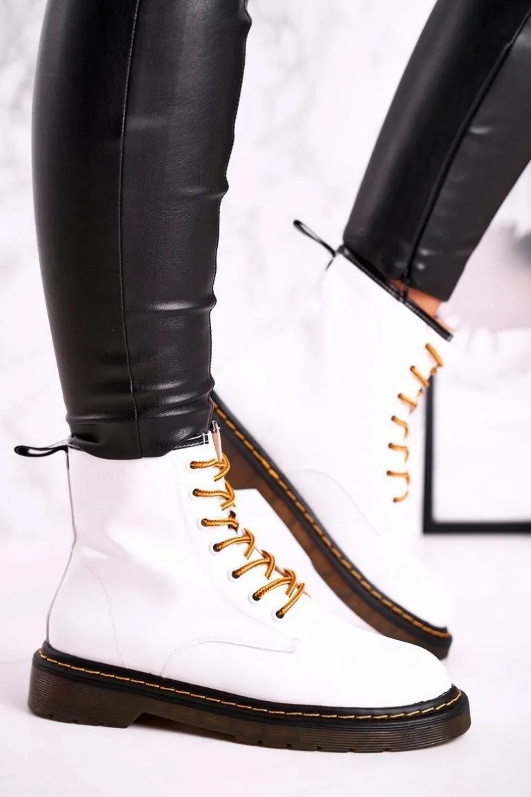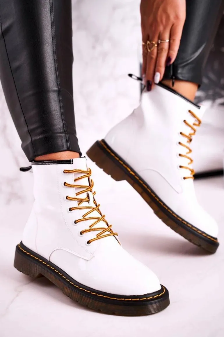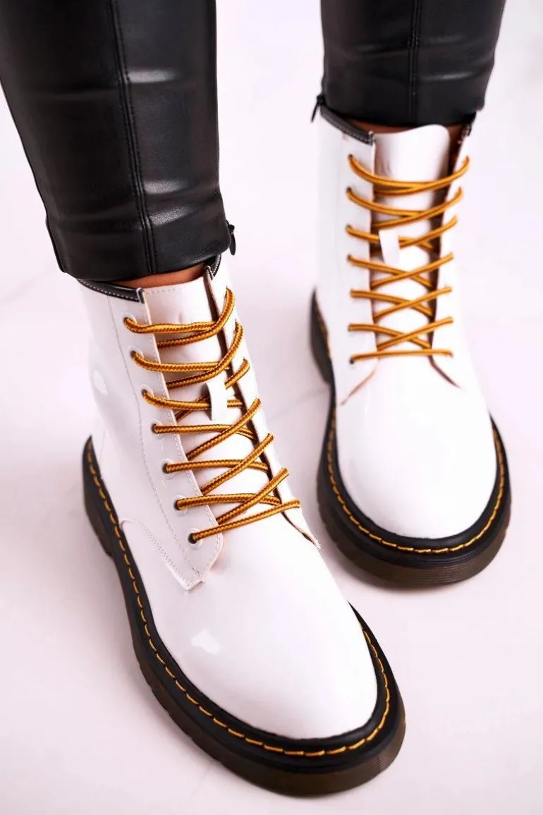 Damskie Botki Trapery Glany Skórzane Białe GOE GG2N3057A