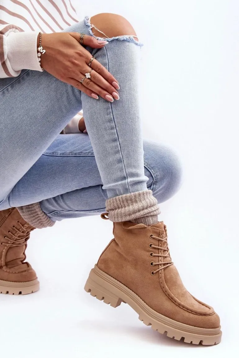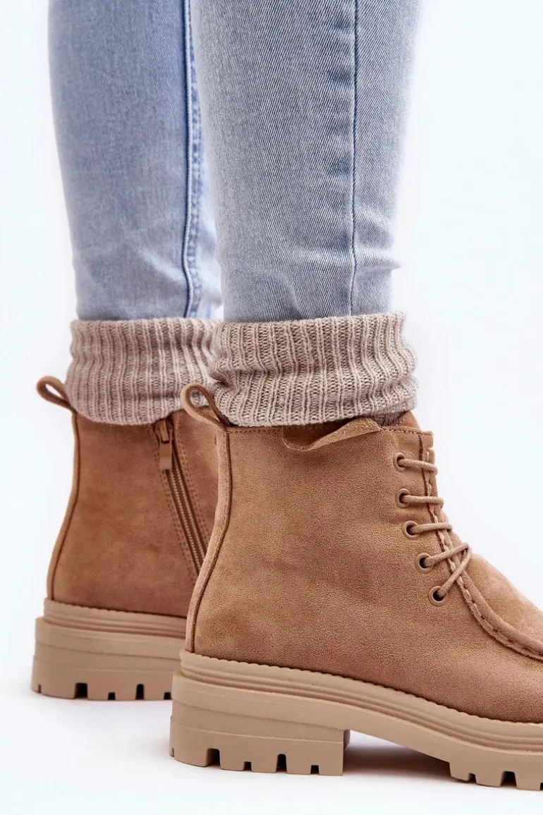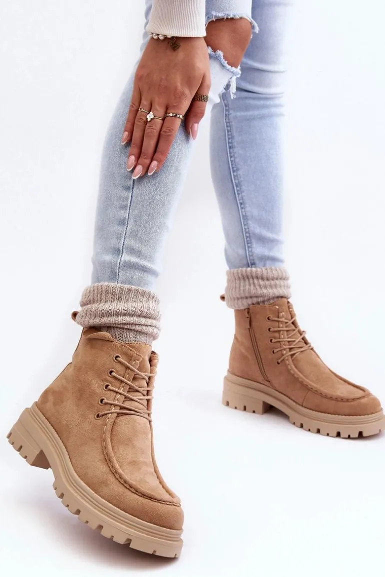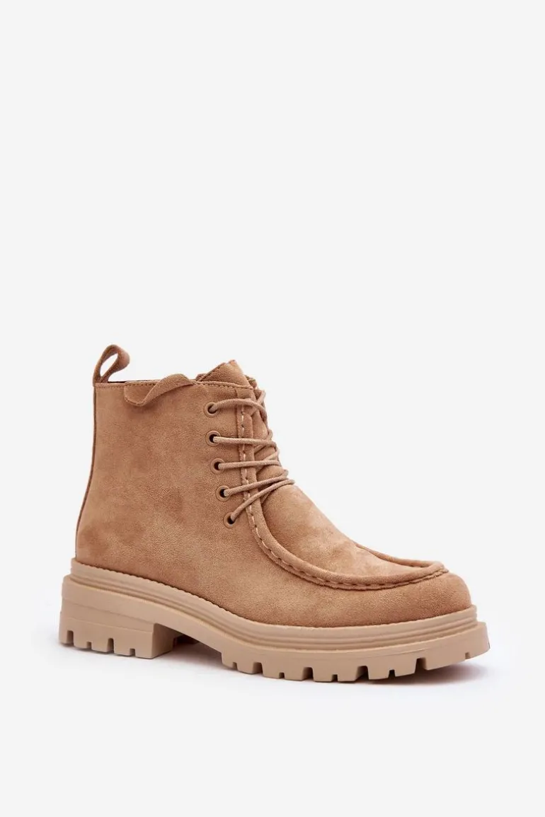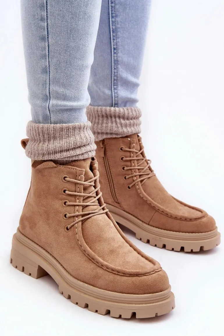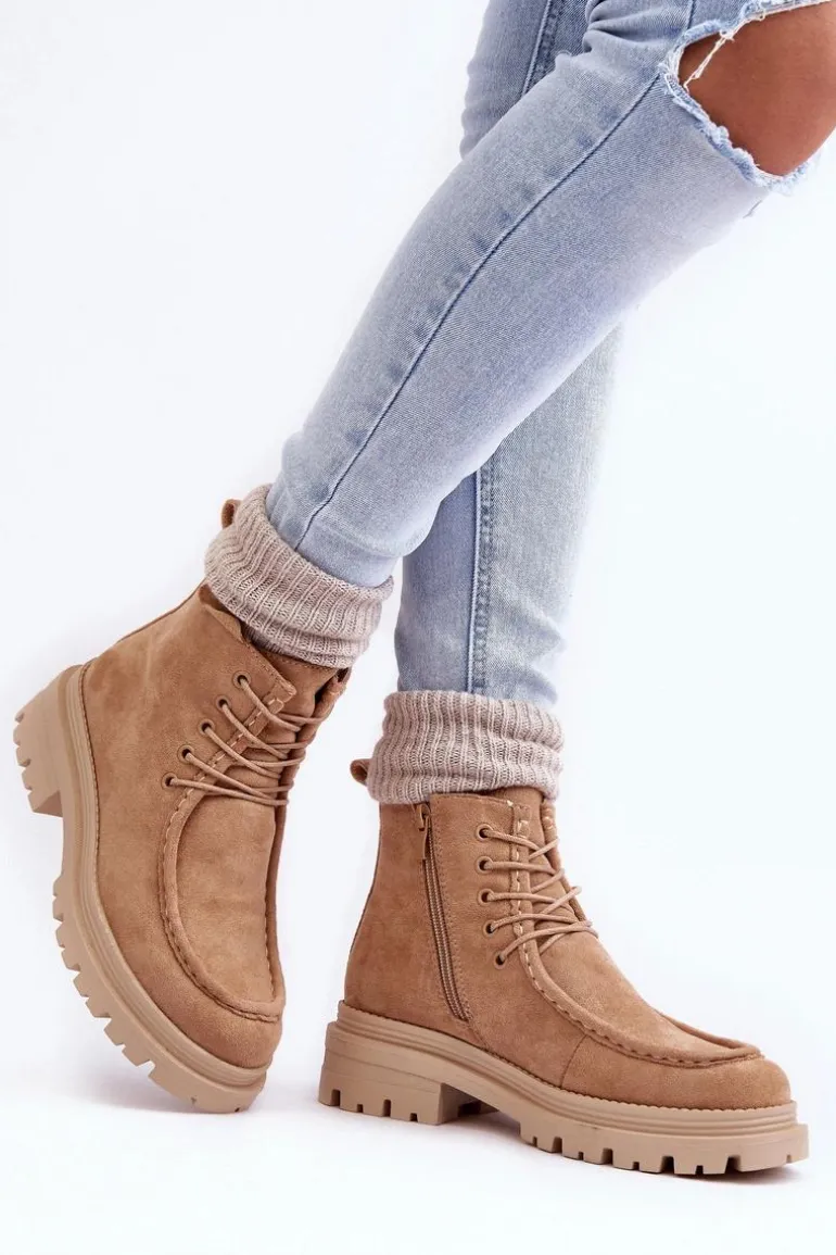Trapery damskie wykonane z eko zamszu. Zapinane na suwak z boku. Wewnątrz ocieplone kocem obuwniczym. Płaski obcas oraz platforma zapewnia stabilność na każdym kroku. Z przodu dodatkowe sznurowanie. Noski zaokrąglone. Zapiętek usztywniony. Buty idealnie sprawdzą się w zimowe dni! Przy wyborze rozmiaru prosimy sugerować się tabelą rozmiarów.