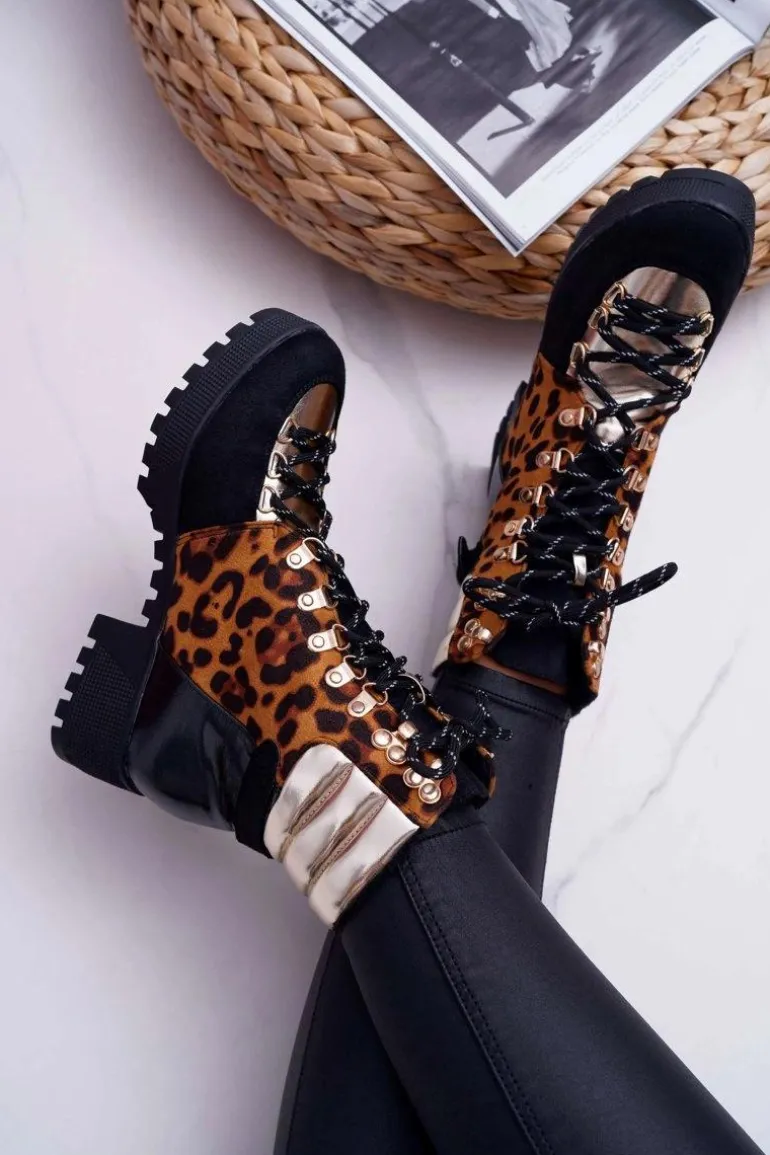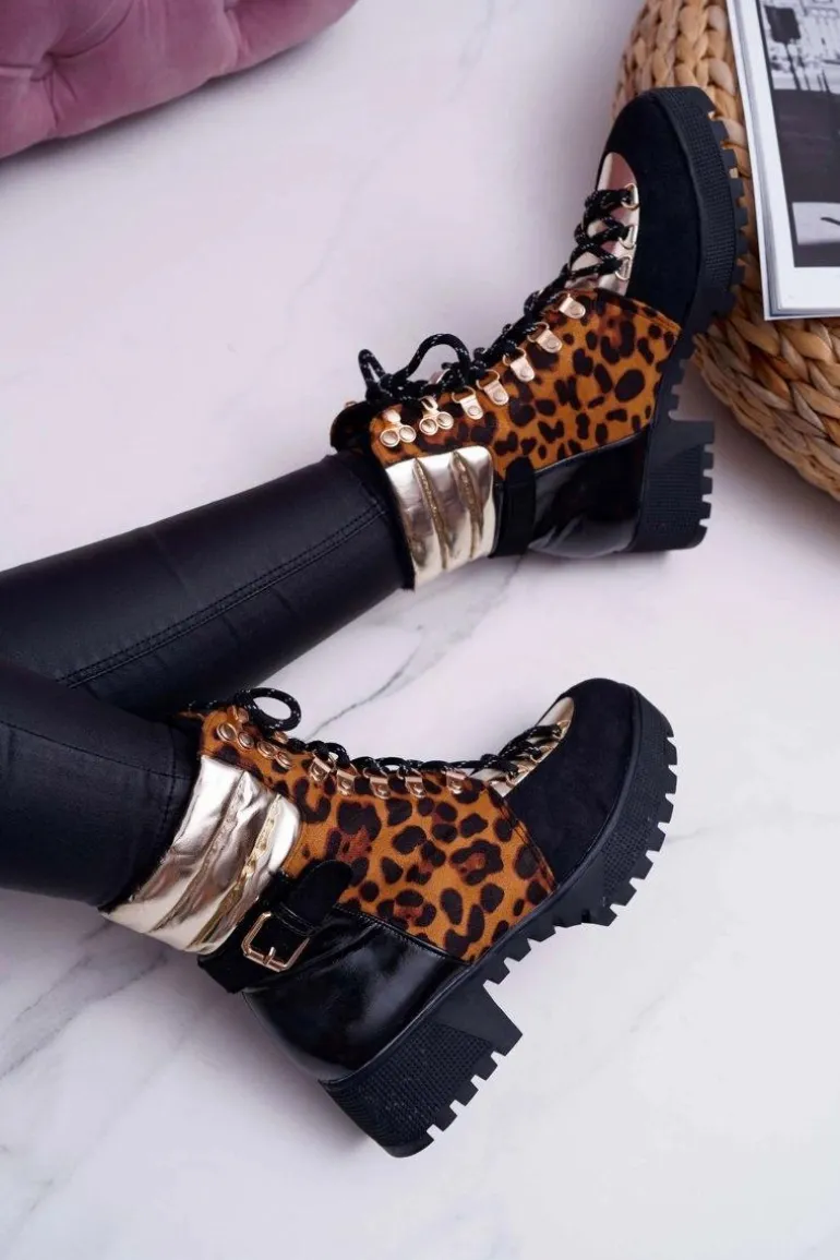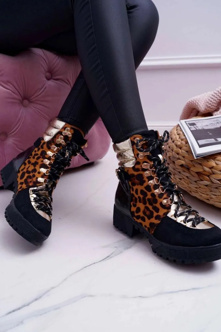 Damskie Botki Trapery Płaski Obcas W Panterkę Move On
