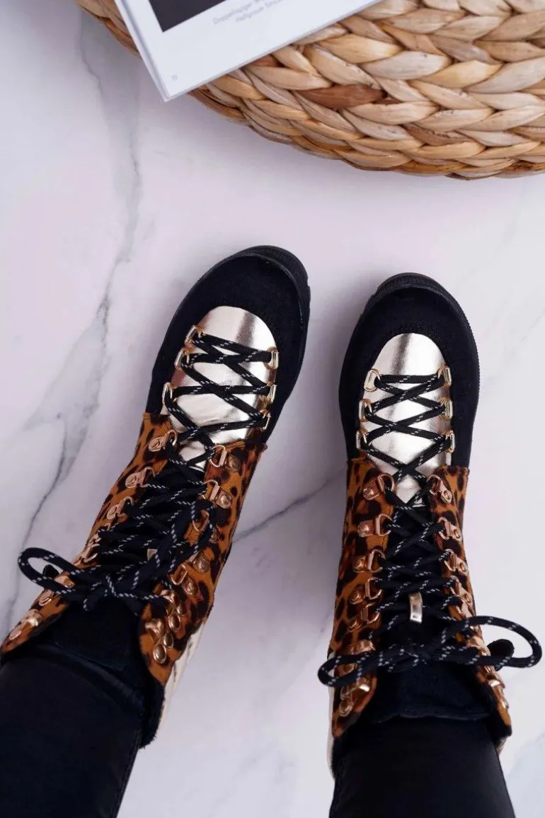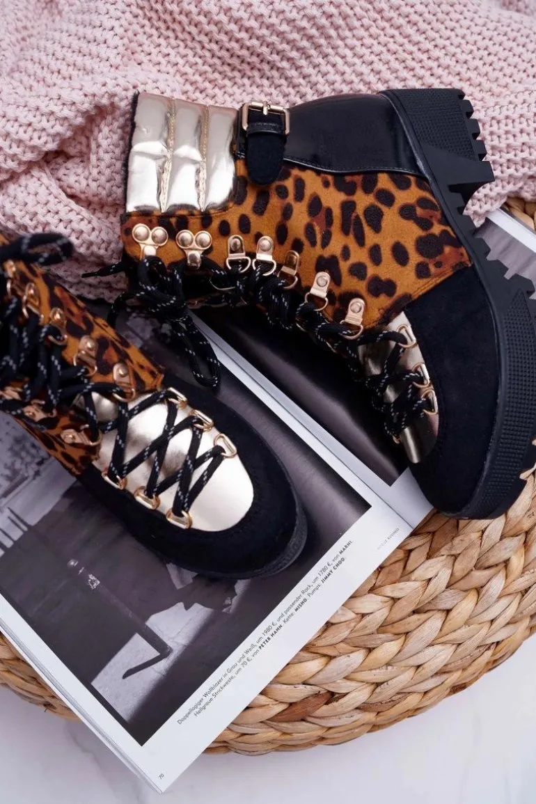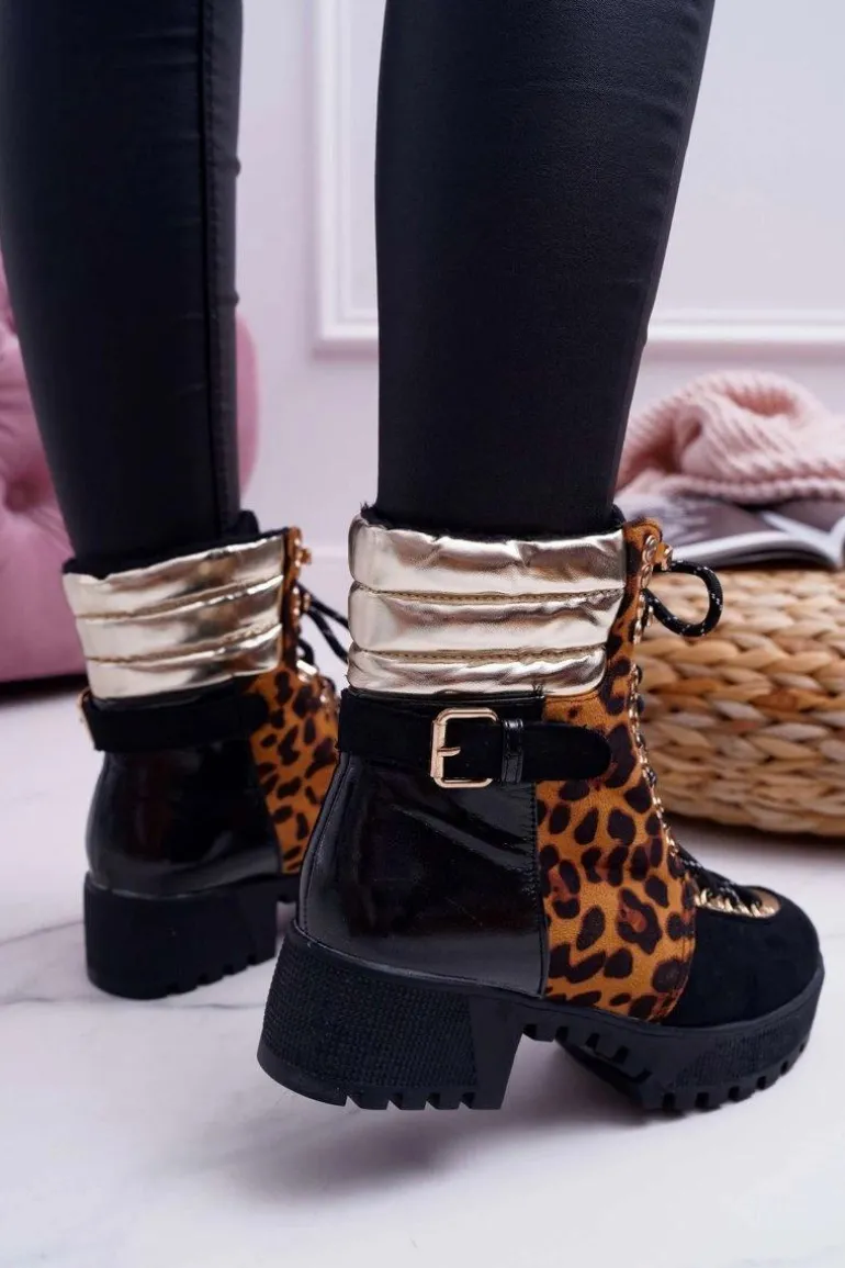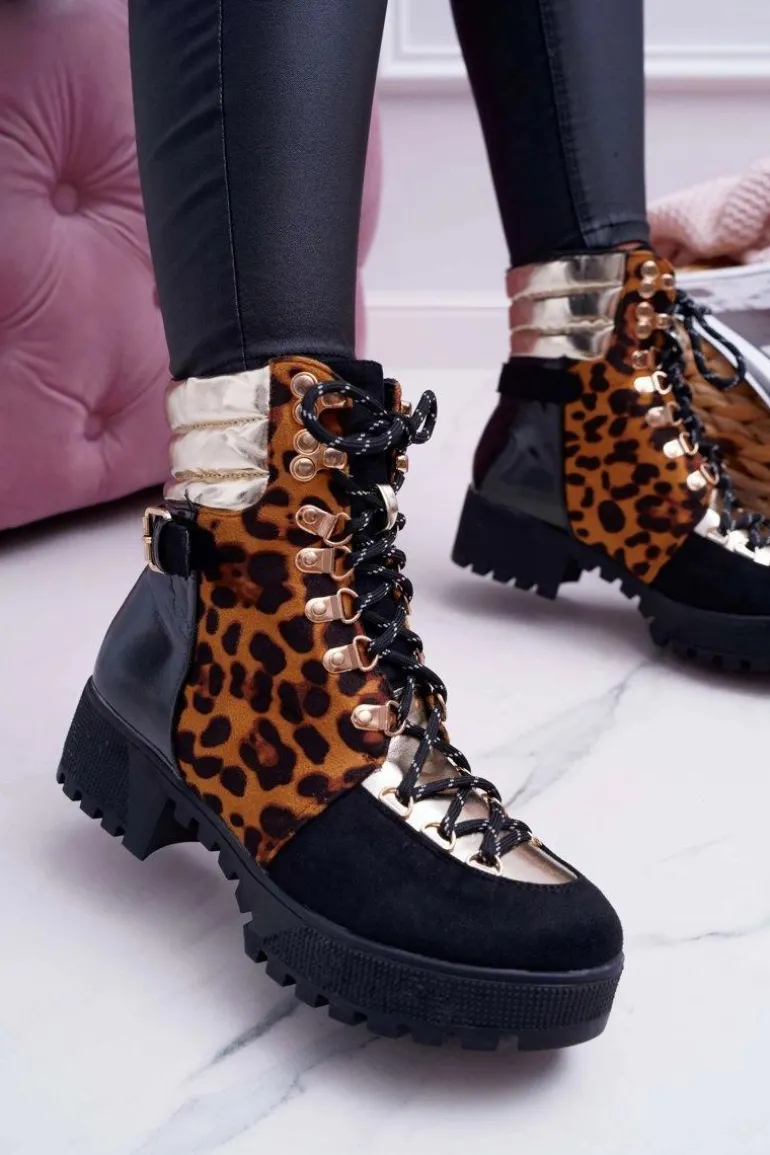 Damskie Botki Trapery Płaski Obcas W Panterkę Move On
