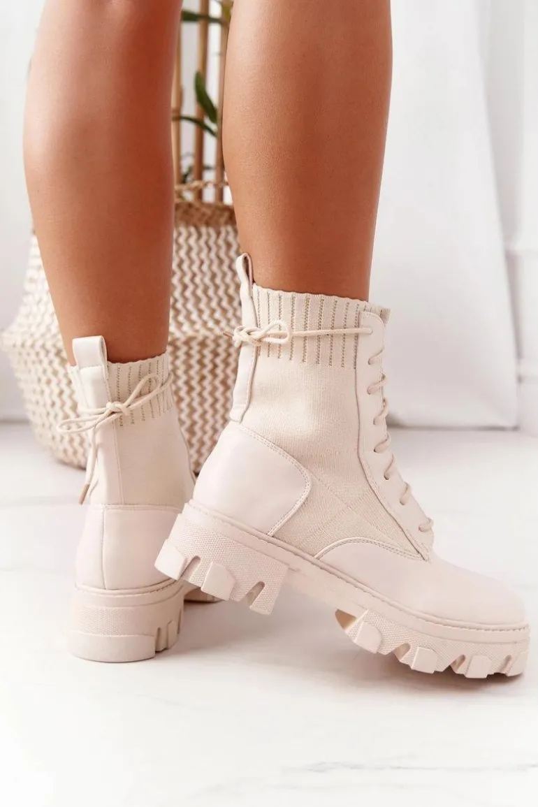 Piękne botki damskie z materiałową cholewką. Wykonane zostały z eko skóry na grubej podeszwie. Przy wyborze rozmiaru prosimy sugerować się tabelą rozmiarów.
