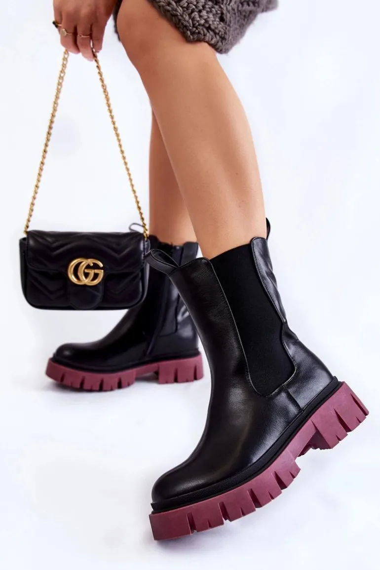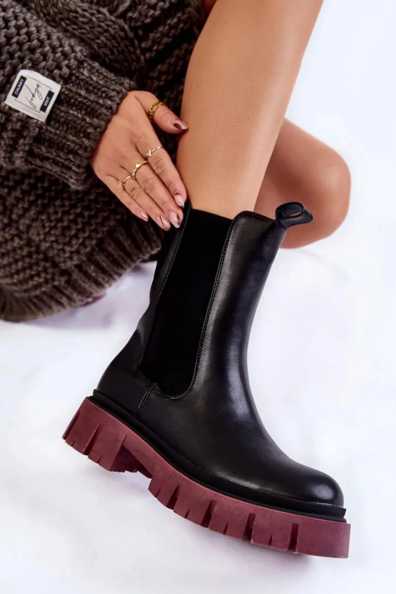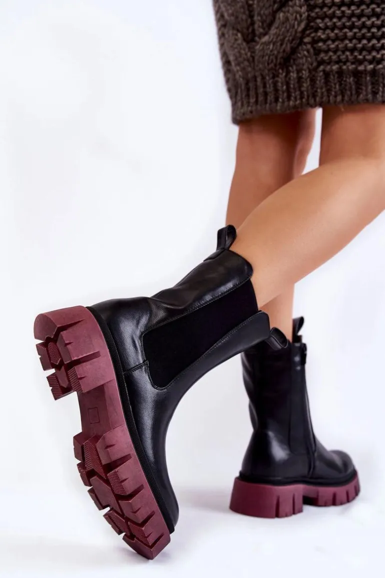 Damskie botki na masywnej platformie z płaskim obcasem w stylu workerów. Posiadają wysoką, sięgającą ponad kostkę cholewkę. Wykonane ze skóry ekologicznej. Elastyczna wstawka sprawi, że buty świetnie dopasują się do tęgości nogi. Botki te zostały ocieplone krótkim, miłym w dotyku futerkiem. Dodatkowo zapiętek jest usztywniany. Botki doskonale sprawdzą się w jesiennych stylizacjach. Przy wyborze rozmiaru prosimy kierować się tabelą rozmiarów
