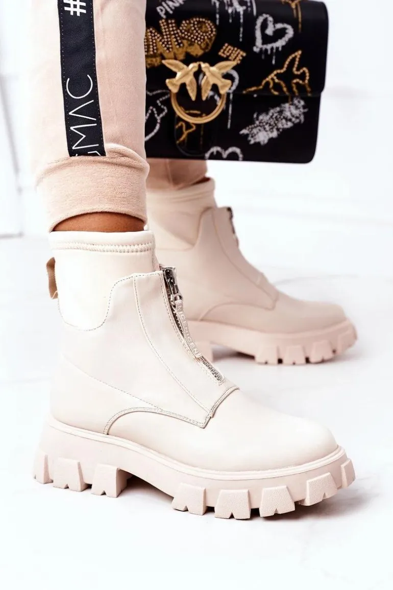 Piękne botki damskie z elastyczną, materiałową cholewką. Buty są wykonane z eko skóry. Zakładanie ułatwi wszyty suwak. Przy wyborze rozmiaru prosimy sugerować się tabelą rozmiarów.