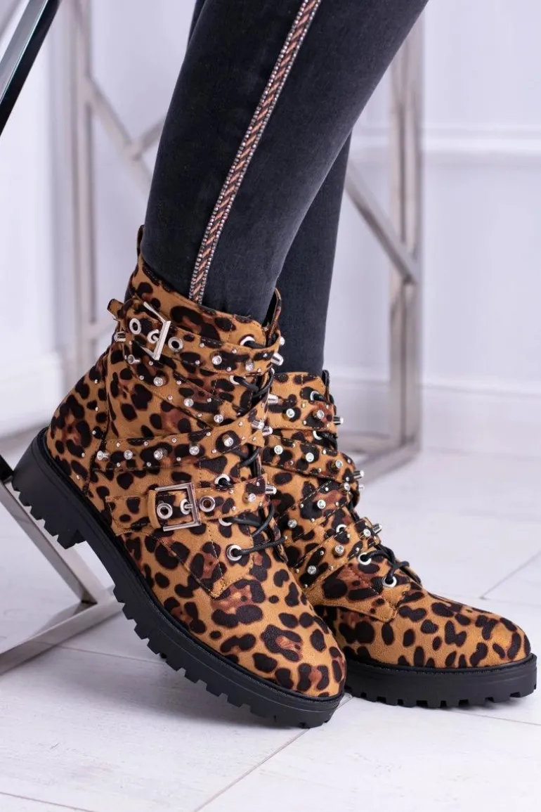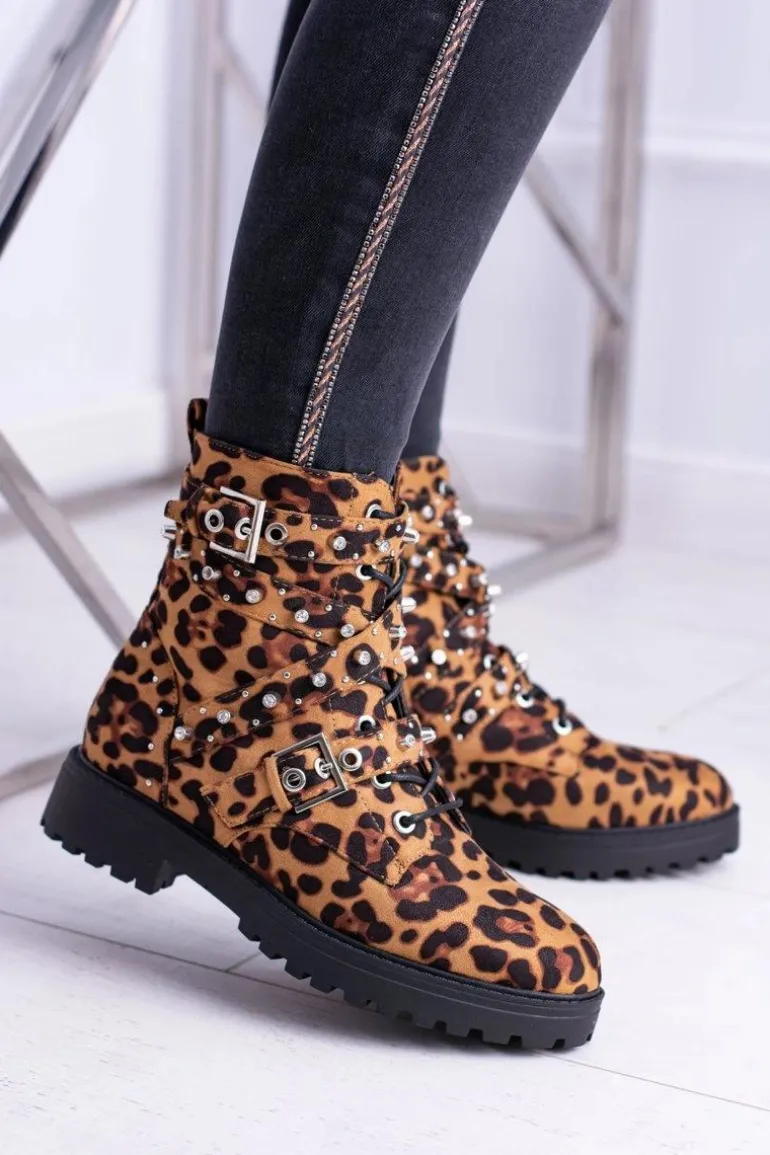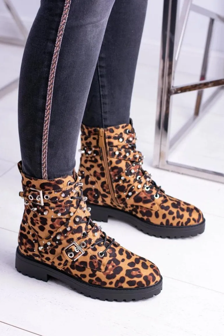 Damskie Botki Wysokie Trapery W Panterkę Albere