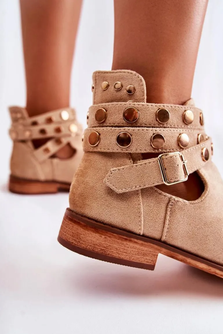 Wyjątkowe botki damskie z dżetami na paskach oraz z tyłu cholewki. Botki wykonane są z eko zamszu. Miękka wkładka z eko skóry oraz wygodny, płaski obcas zadbają o Twój komfort. Botki dopełnią wiele Twoich stylizacji! Posiadają wycięcia z boku cholewki. Podeszwa antypoślizgowa. Koniecznie sprawdź całą naszą kolekcję damskich botków! Przy wyborze rozmiaru prosimy sugerować się tabelą rozmiarów.