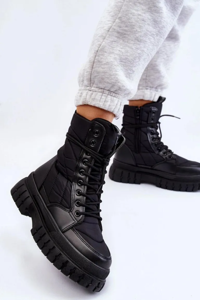 Botki Ariadna to nowość tego sezonu! Świetnie prezentują się z zimowymi stylizacjami. Cholewka jest wykonana z połączenia tkaniny oraz skóry ekologicznej. Wnętrze zostało wykończone ciepłym materiałem Przy wyborze rozmiaru prosimy sugerować się tabelą rozmiarów.