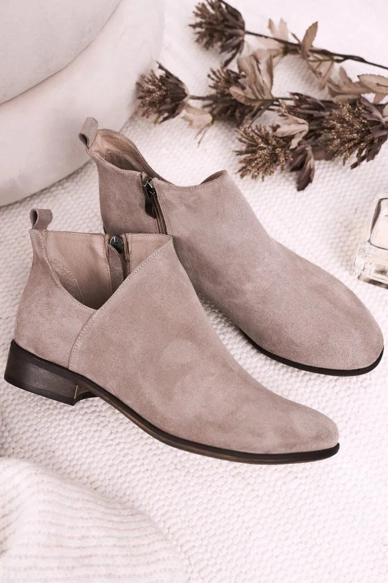 Damskie Botki Z Wycięciem Zamszowe Cappuccino Clarence