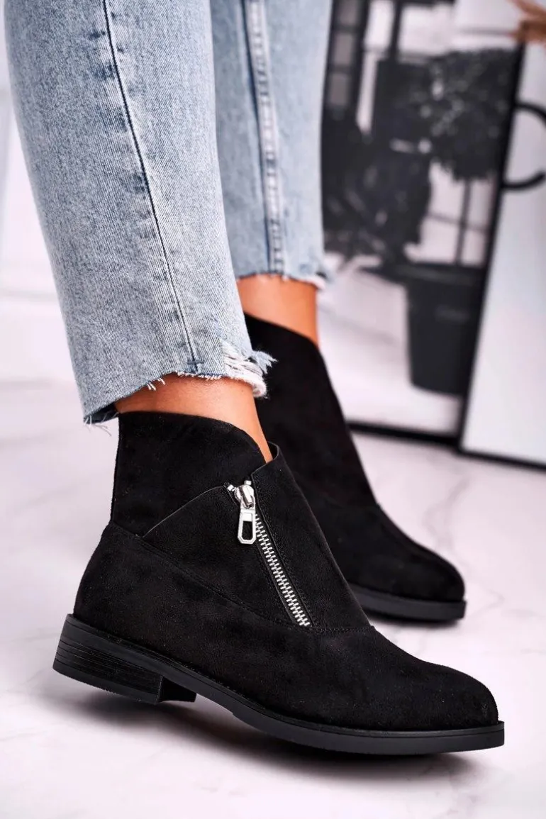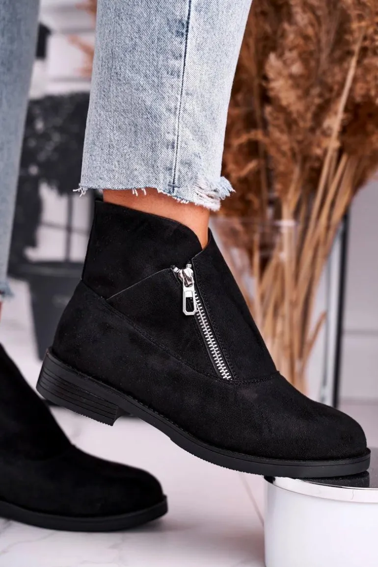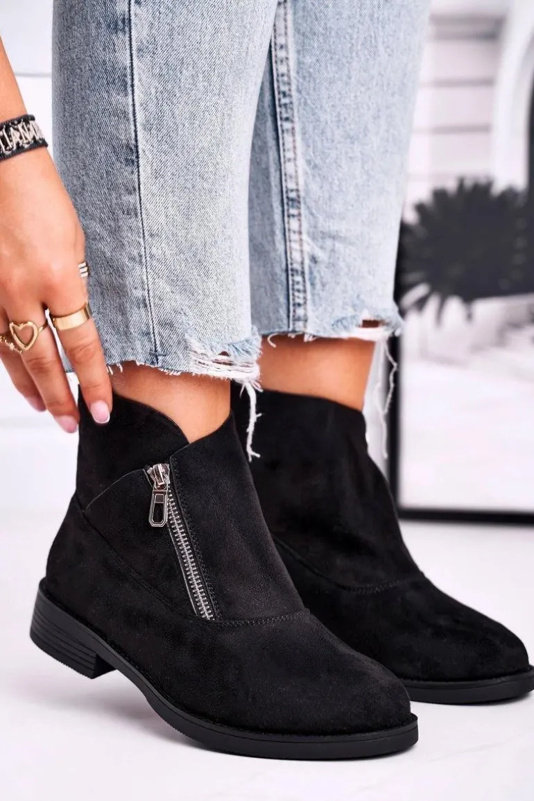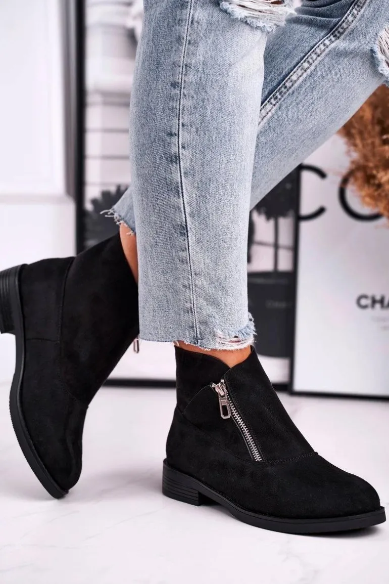 Damskie Botki Z Zamkiem Zamszowe Czarne Juno