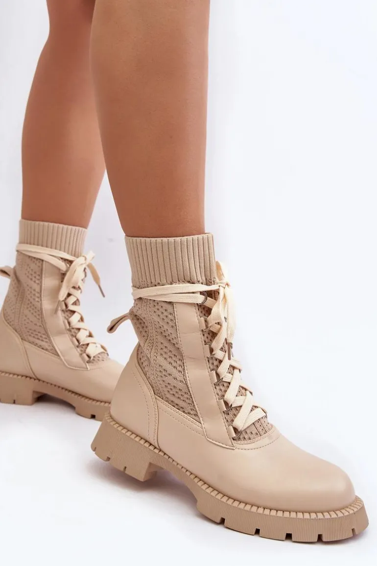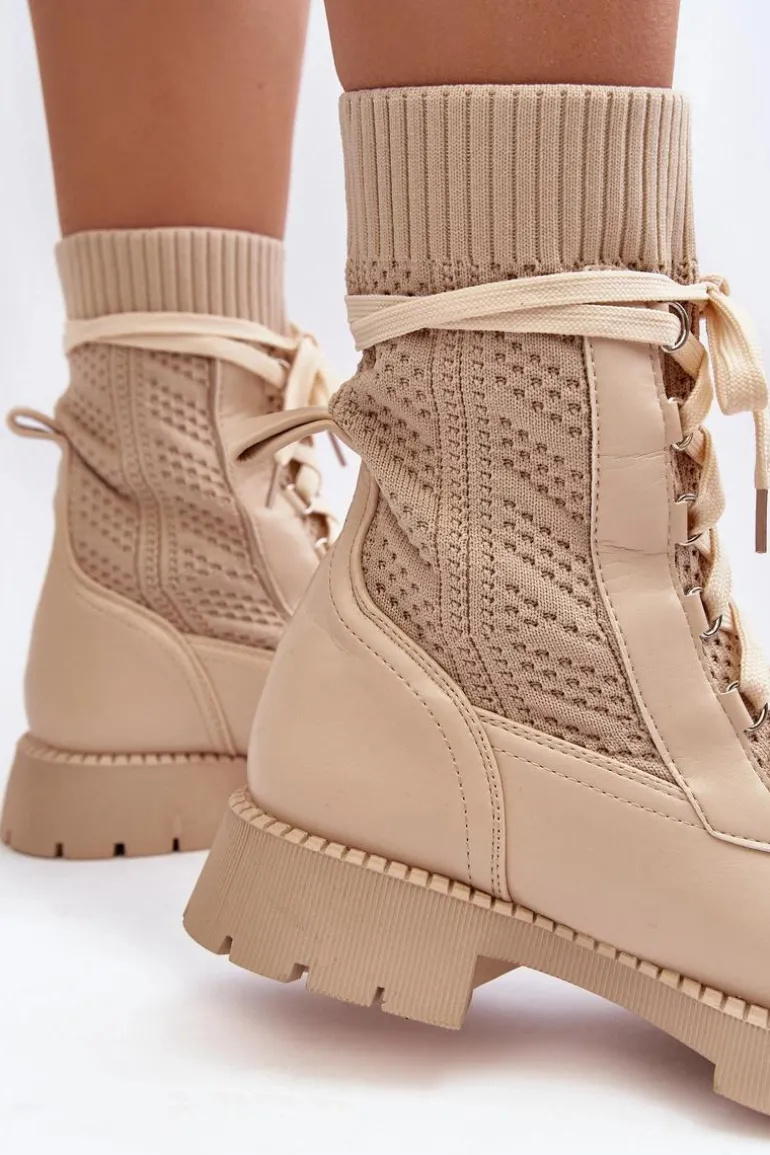 Modne botki damskie zostały wykonane z połączenia eko skóry I materiału tekstylnego. Model wsuwany oraz dodatkowo posiada sznurowanie. Osadzone na platformie oraz płaskim obcasie. Miękka, eko skórzana wkładka zapewni komfort podczas użytkowania. Noski zaokrąglone. Cholewka za kostkę. Koniecznie powinnaś je mieć! Przy wyborze rozmiaru prosimy sugerować się tabelą rozmiarów.