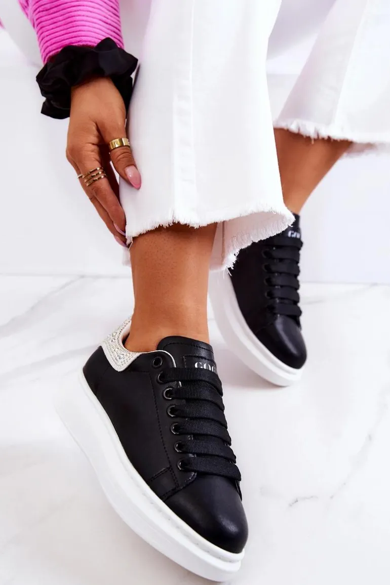 Świetne sneakersy wykonane ze skóry. Ten modny fason idealnie będzie komponował się z codziennymi stylizacjami. Klasycznie wiązany model. Miękka, eko skórzana wkładka sprawi, że będziesz czuć się w nich komfortowo przez cały dzień. Delikatna platforma uniesie Twoją sylwetkę. Przy wyborze rozmiaru prosimy sugerować się tabelą rozmiarów.
