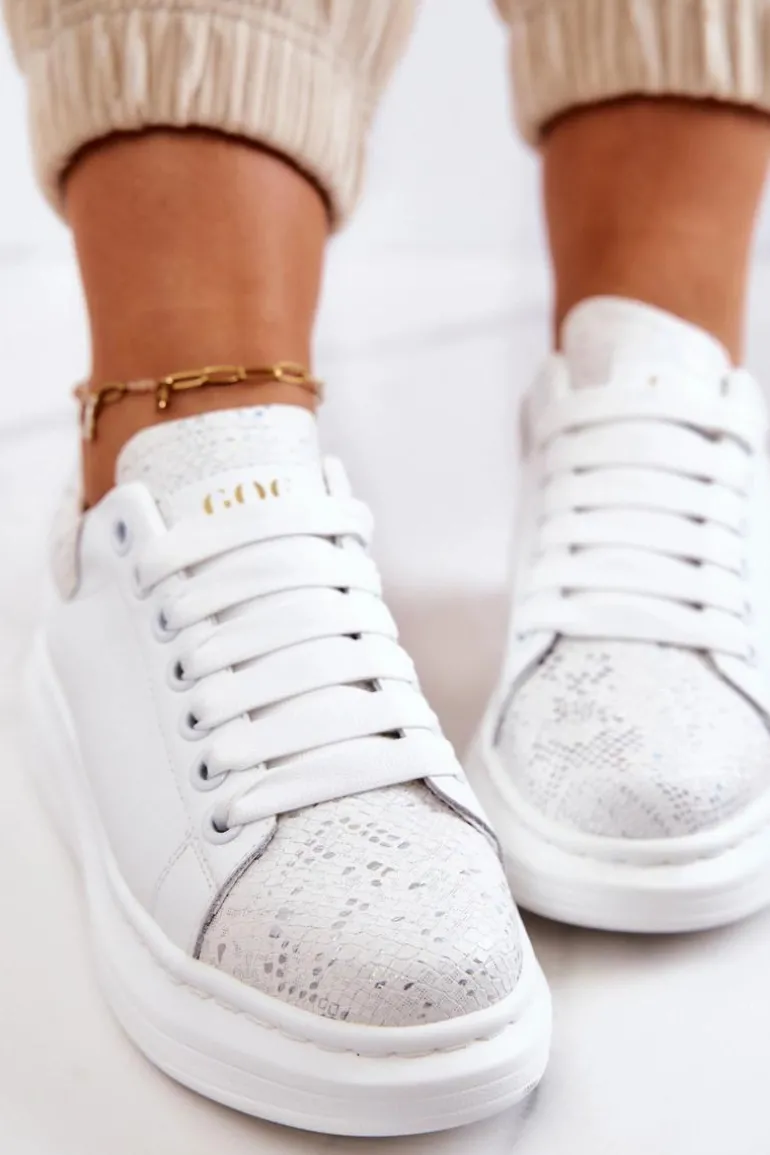 Świetne sneakersy wykonane z wysokiej jakości eko skóry. Ten modny fason idealnie będzie komponował się z codziennymi stylizacjami. Klasycznie wiązany model. Miękka, eko skórzana wkładka sprawi, że będziesz czuć się w nich komfortowo przez cały dzień. Delikatna platforma uniesie Twoją sylwetkę. Przy wyborze rozmiaru prosimy sugerować się tabelą rozmiarów.
