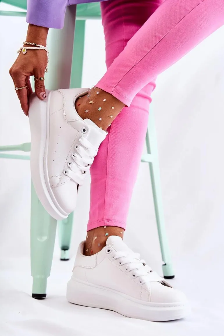 Wygodne sportowe damskie buty zostały wykonane z wysokiej jakości eko skóry z delikatną perforacją na boku cholewki. Wiązane na płaskie sznurowadła. Osadzone na masywnej platformie, która została wykonana z gumowego tworzywa. Wkładka jest wykonana z eko skóry. Nosek zaokrąglony. Model, który pasuje do wielu sportowych stylizacji. Koniecznie sprawdź pozostałe modele obuwia sportowego dostępnego w naszej ofercie! Przy wyborze rozmiaru prosimy kierować tabelą rozmiarów.