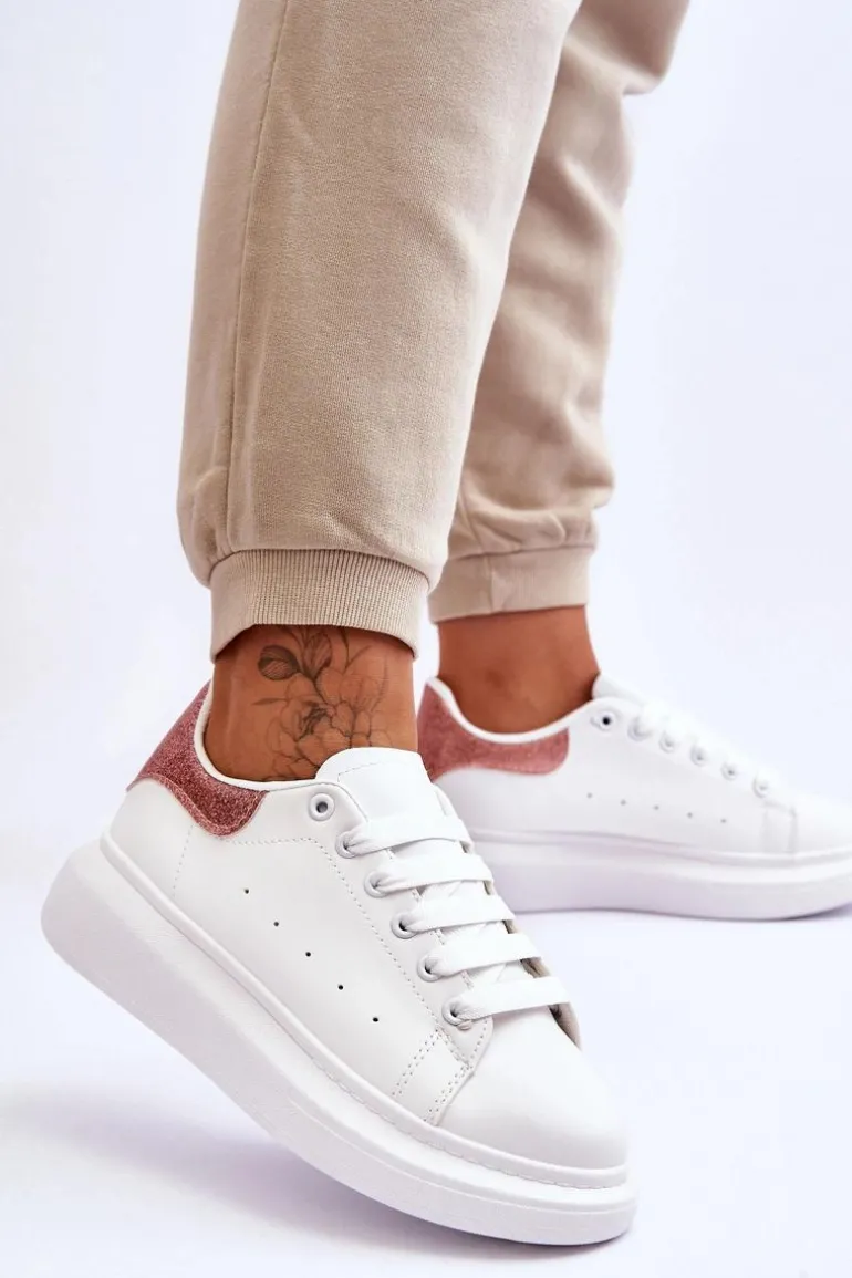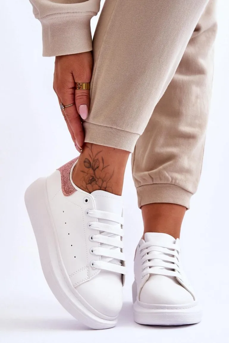 Wygodne sportowe damskie buty zostały wykonane z wysokiej jakości eko skóry z delikatną perforacją na boku cholewki. Wiązane na płaskie sznurowadła. Osadzone na masywnej platformie, która została wykonana z gumowego tworzywa. Wkładka jest wykonana z pianki i materiału. Nosek zaokrąglony. Model, który pasuje do wielu sportowych stylizacji. Koniecznie sprawdź pozostałe modele obuwia sportowego dostępnego w naszej ofercie! Przy wyborze rozmiaru prosimy kierować tabelą rozmiarów.