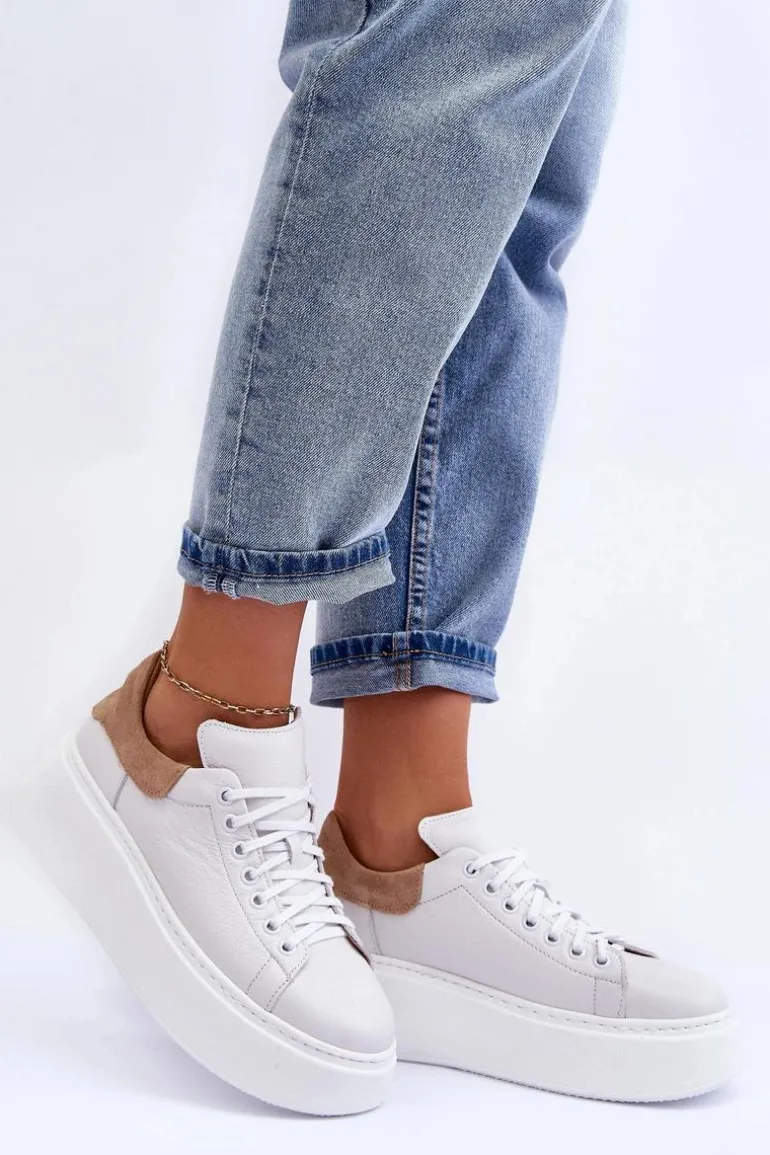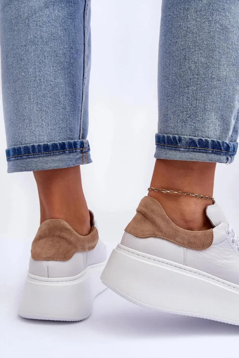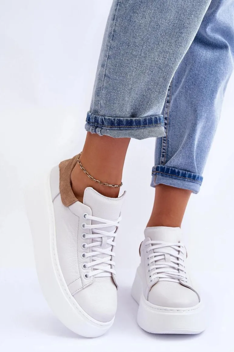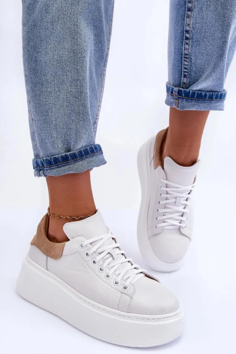 Buty sportowe wykonane z wysokiej jakości skóry naturalnej. Osadzone na masywnej platformie. Model klasycznie sznurowany. Miękka skórzana wkładka gwarantuje komfort przez cały dzień. Koniecznie powinnaś mieć w swojej szafie ten model! Przy wyborze rozmiaru prosimy sugerować się tabelą rozmiarów.