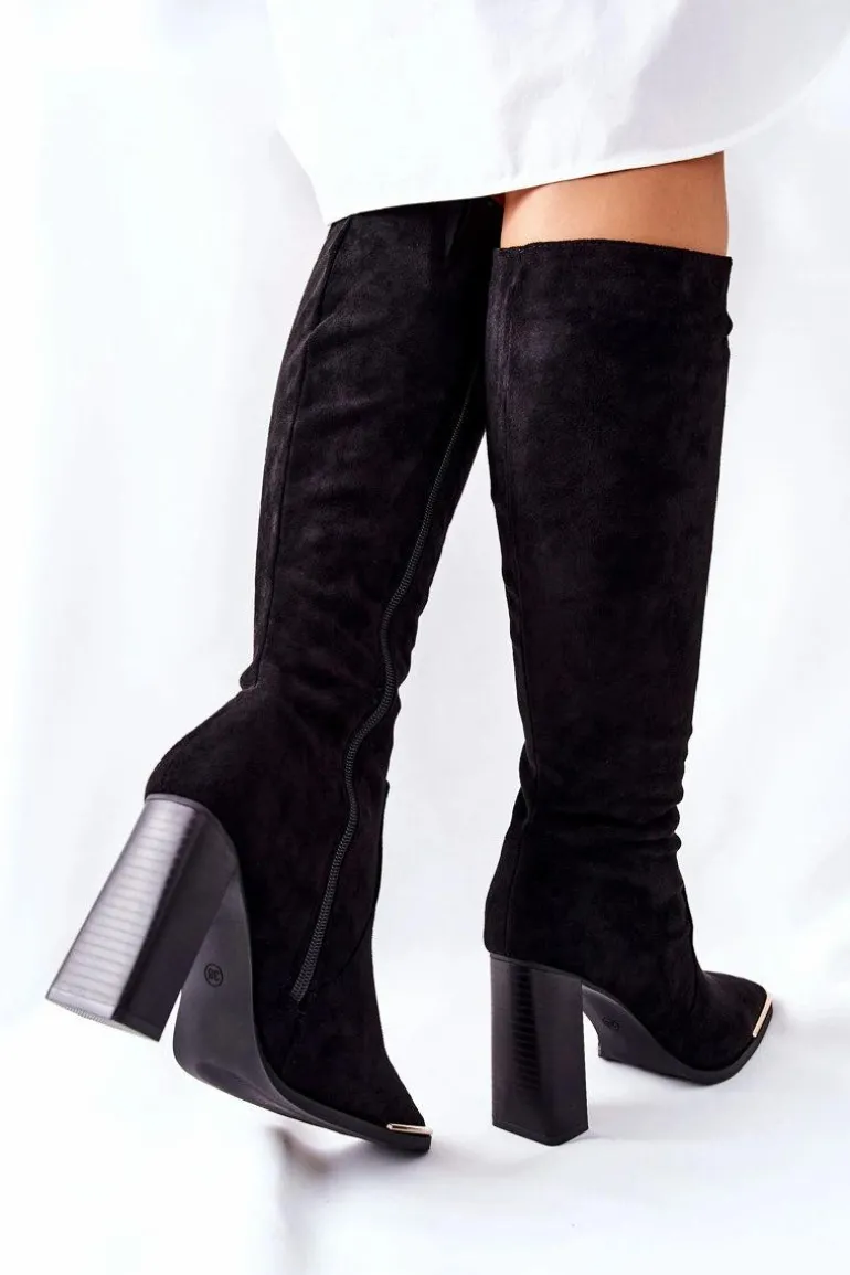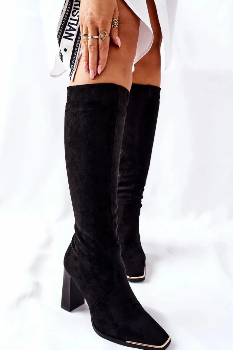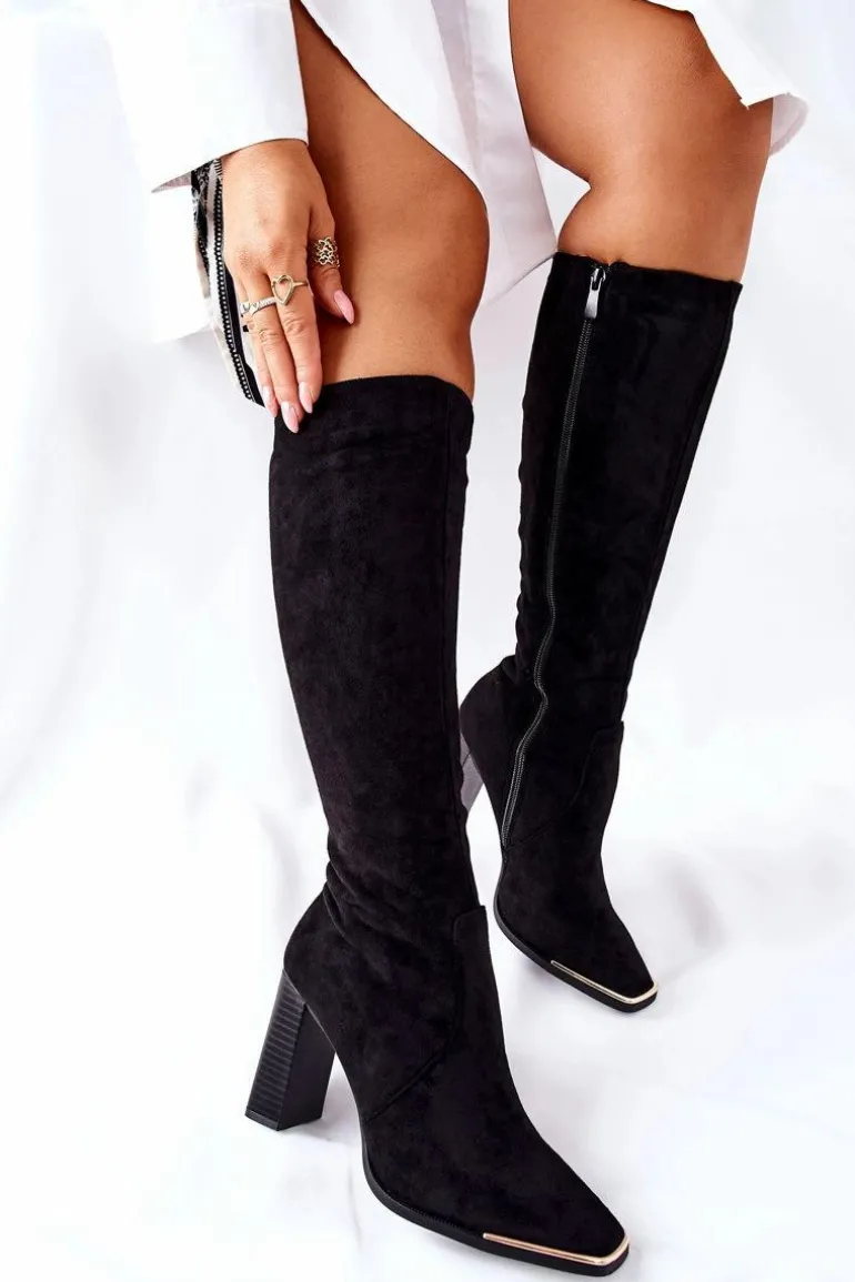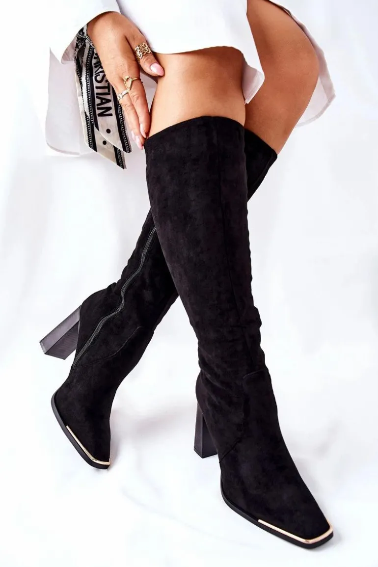 Damskie Ciepłe Kozaki Złoty Nosek Czarne Puentos