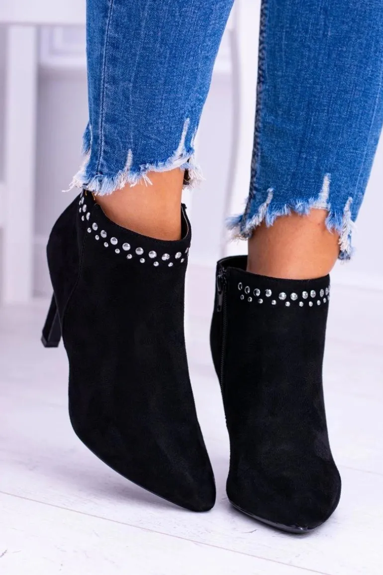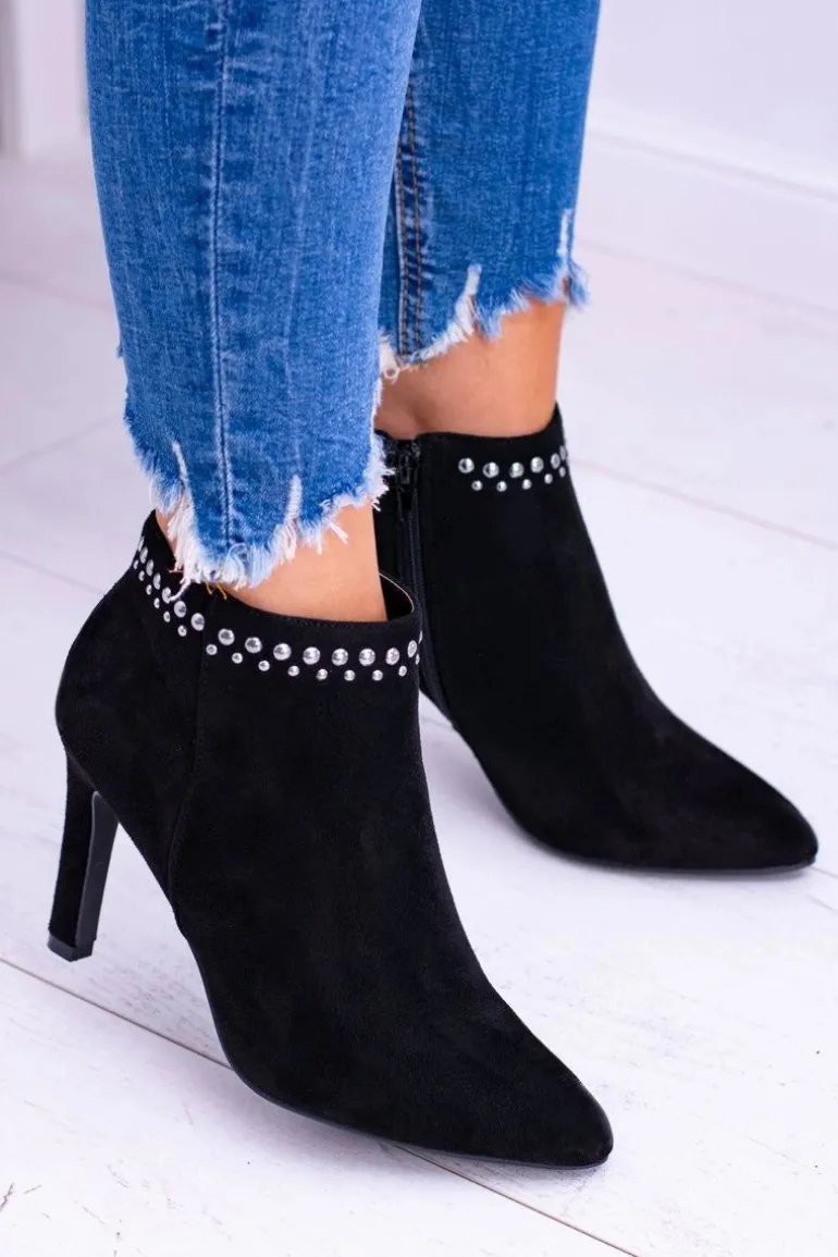 Damskie Czarne Botki Na Szpilce Nity Bemi