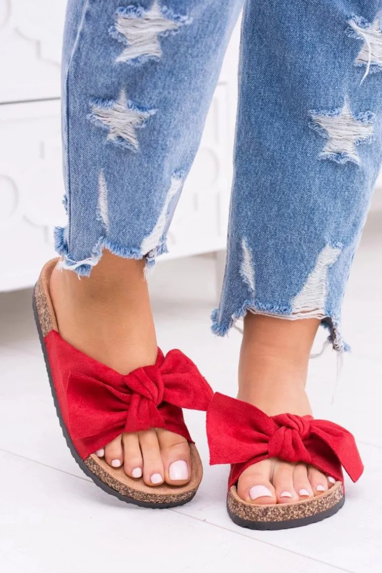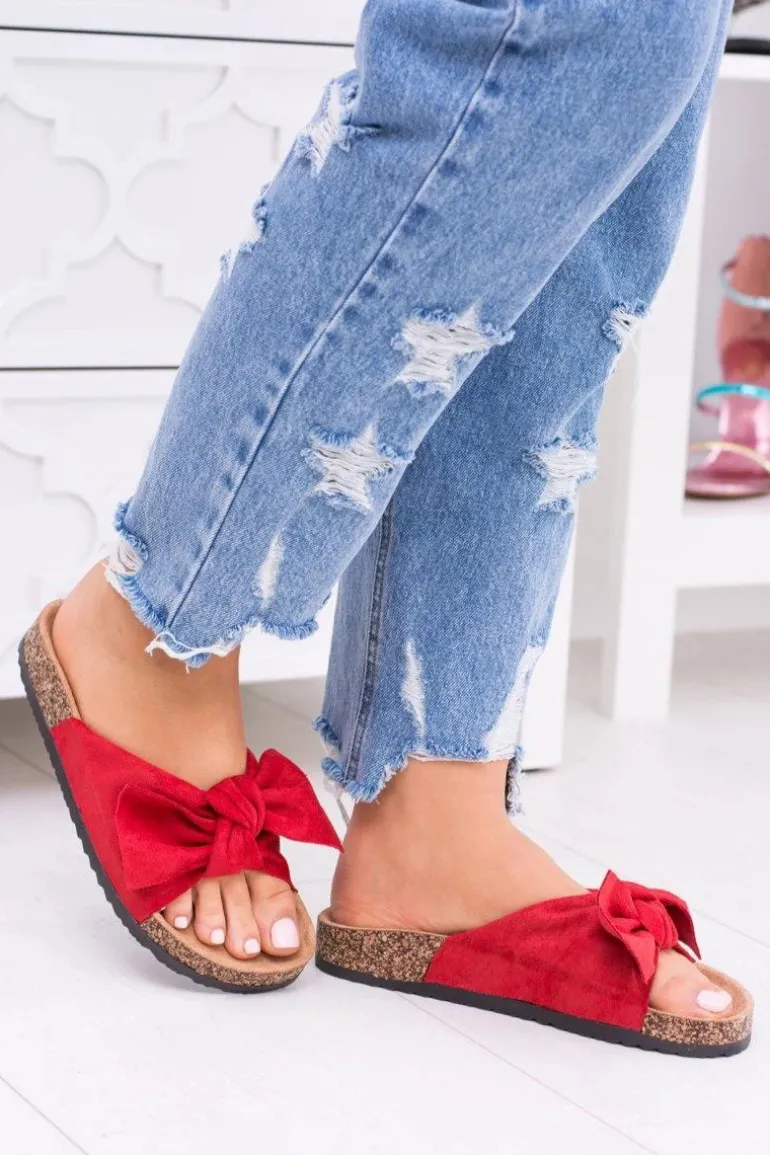 Damskie Czerwone Klapki Na Korku Kokarda Dominica