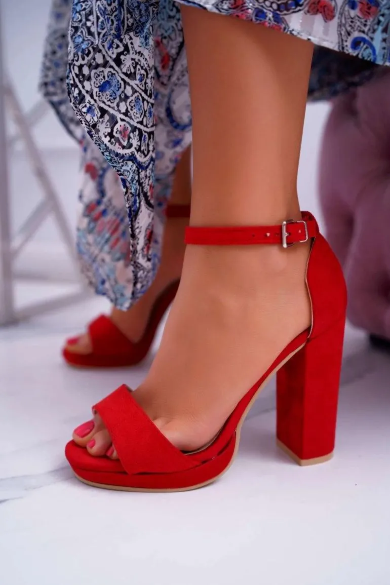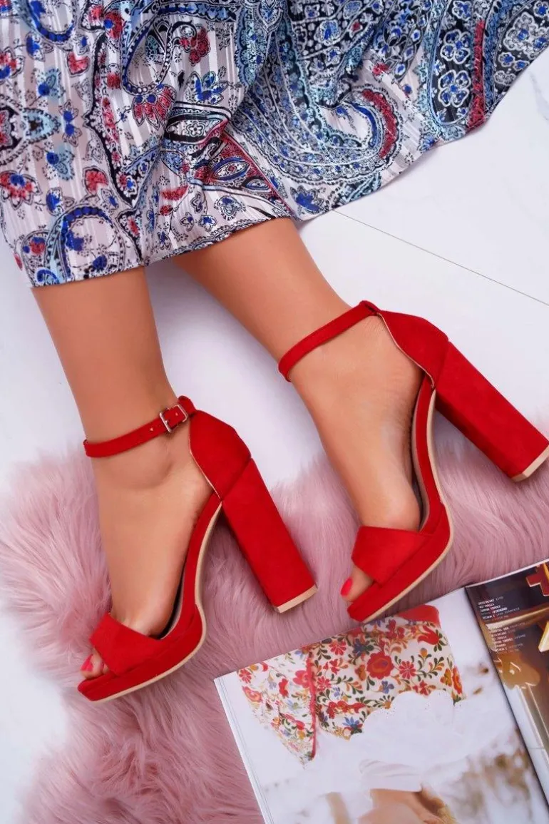 Damskie Czerwone Sandały Na Słupku Platforma Debora