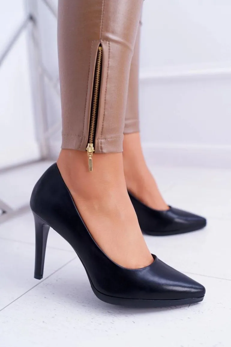 Damskie Czółenka Szpilki Sergio Leone Czarne Matowe Misawu