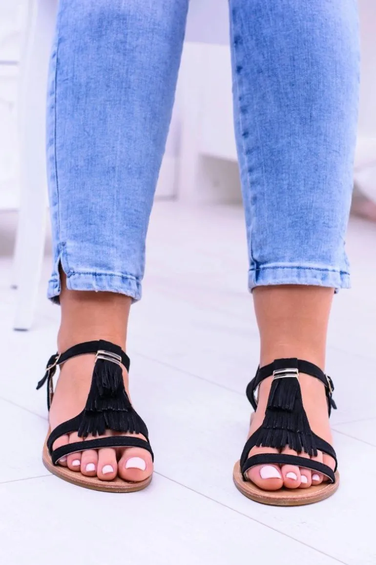 Damskie Eleganckie Płaskie Sandałki Memi Czarne