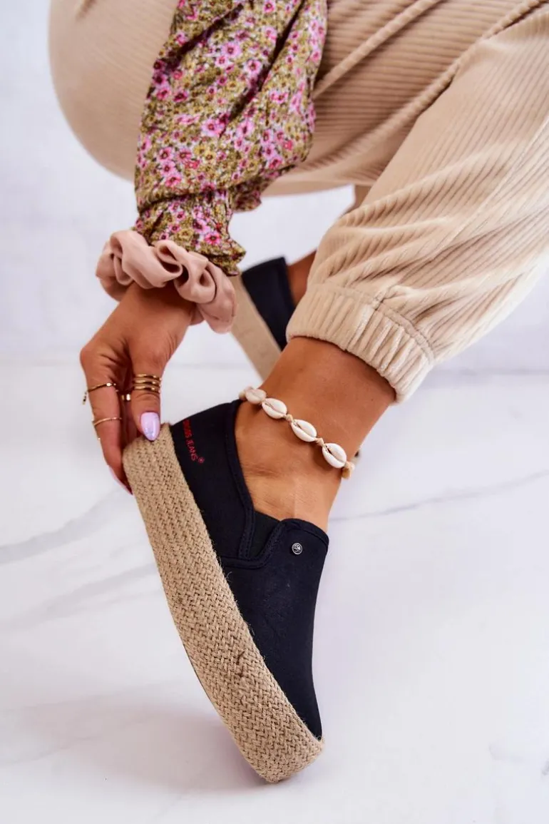 Cudowne espadryle z masywną, plecioną platformą i antypoślizgową podeszwą. Wykonane z materiału tekstylnego. Posiadają zaokrąglony nosek oraz ozdobny element na cholewce z logo marki Cross Jeans. Świetnie sprawdzą się w stylizacjach boho. Miękka wkładka zadba o Twój komfort podczas całodniowego użytkowania. Espadryle posiadają także usztywniany zapiętek. Podczas wyboru rozmiaru prosimy sugerować się tabelą rozmiarów.