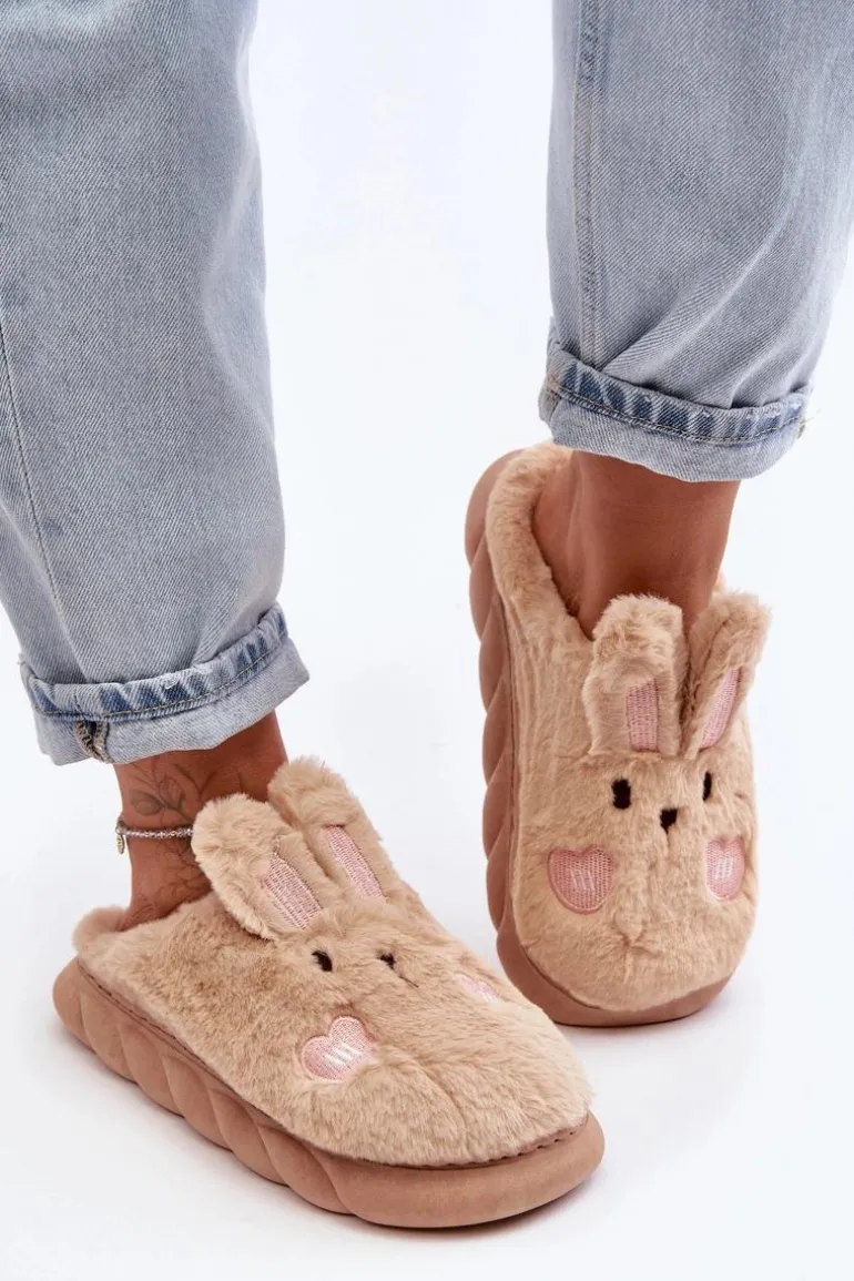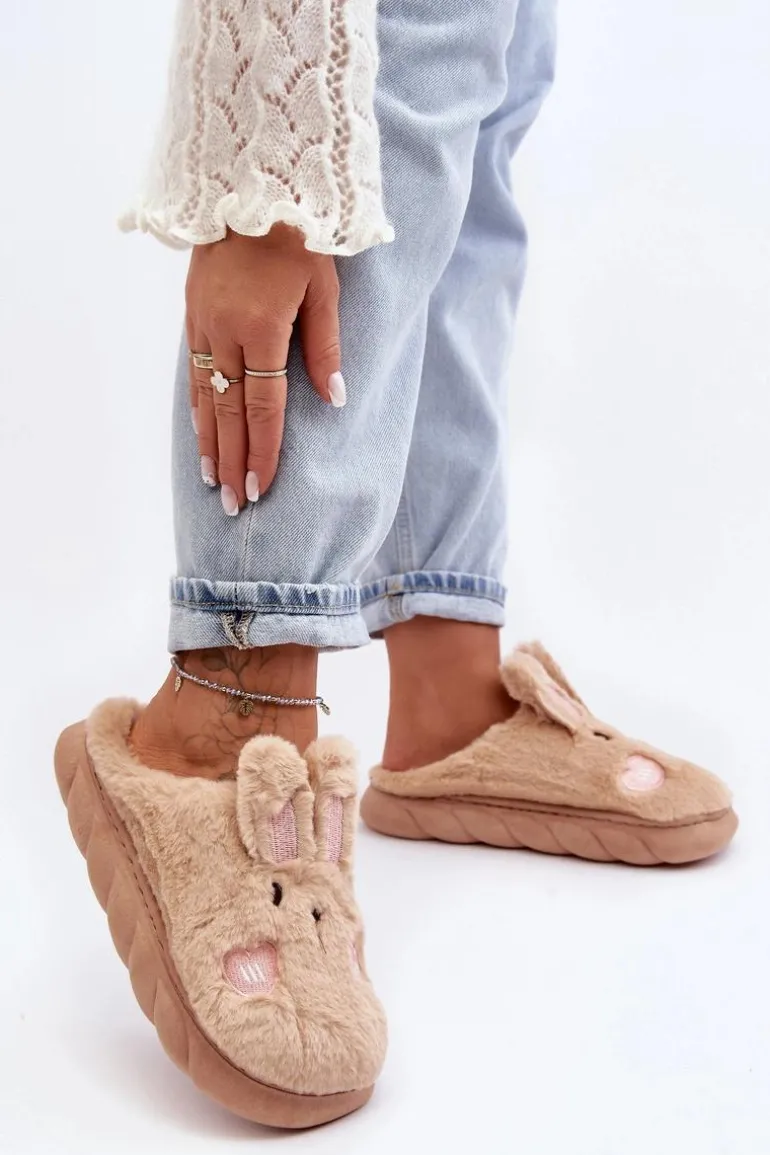 Damskie Futrzane Kapcie Z Króliczkiem Beżowe Naveritte