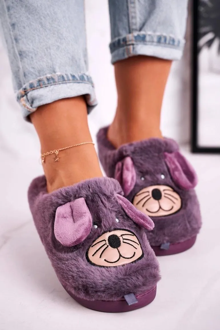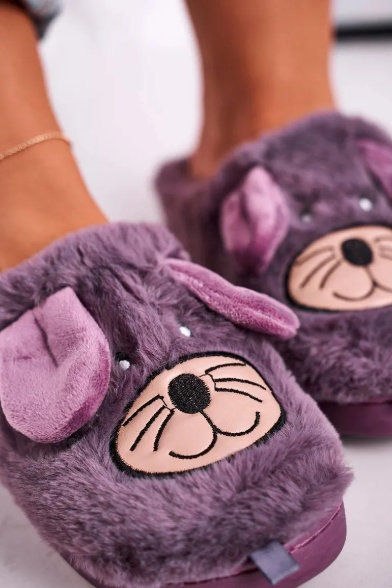 Damskie Futrzane Papcie Myszki Fioletowe Home Sweet Home