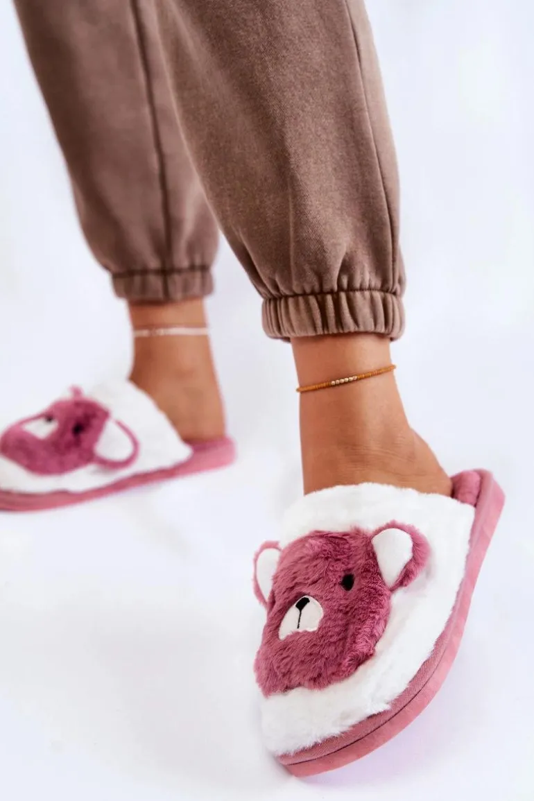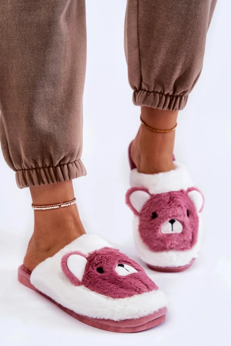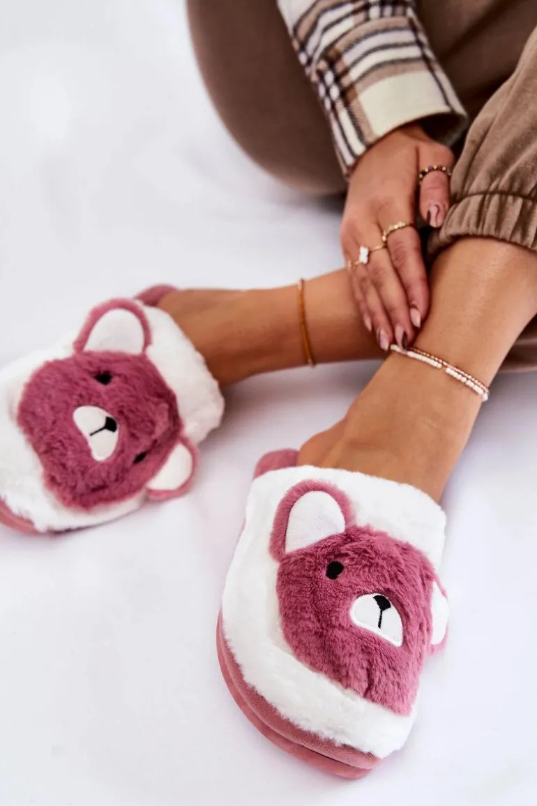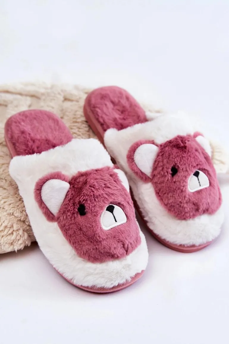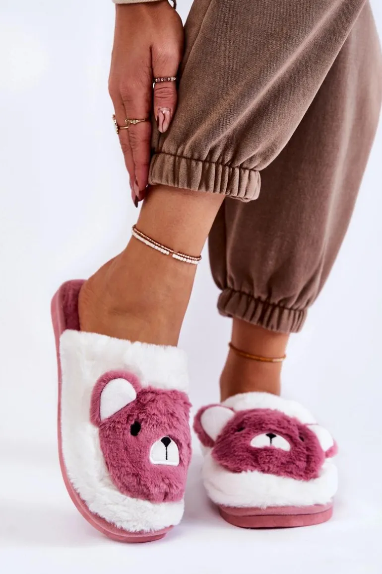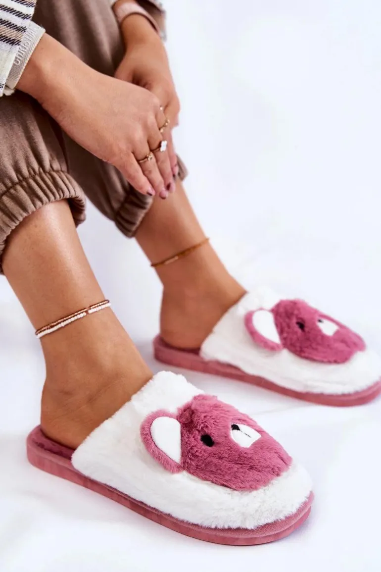 Damskie Futrzane Papcie Z Misiem Różowo-Białe Solly
