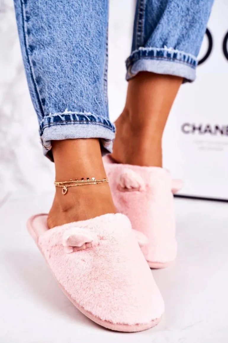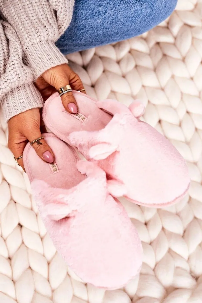 Damskie Futrzane Papcie Z Uszami Jasny Róż Hippo