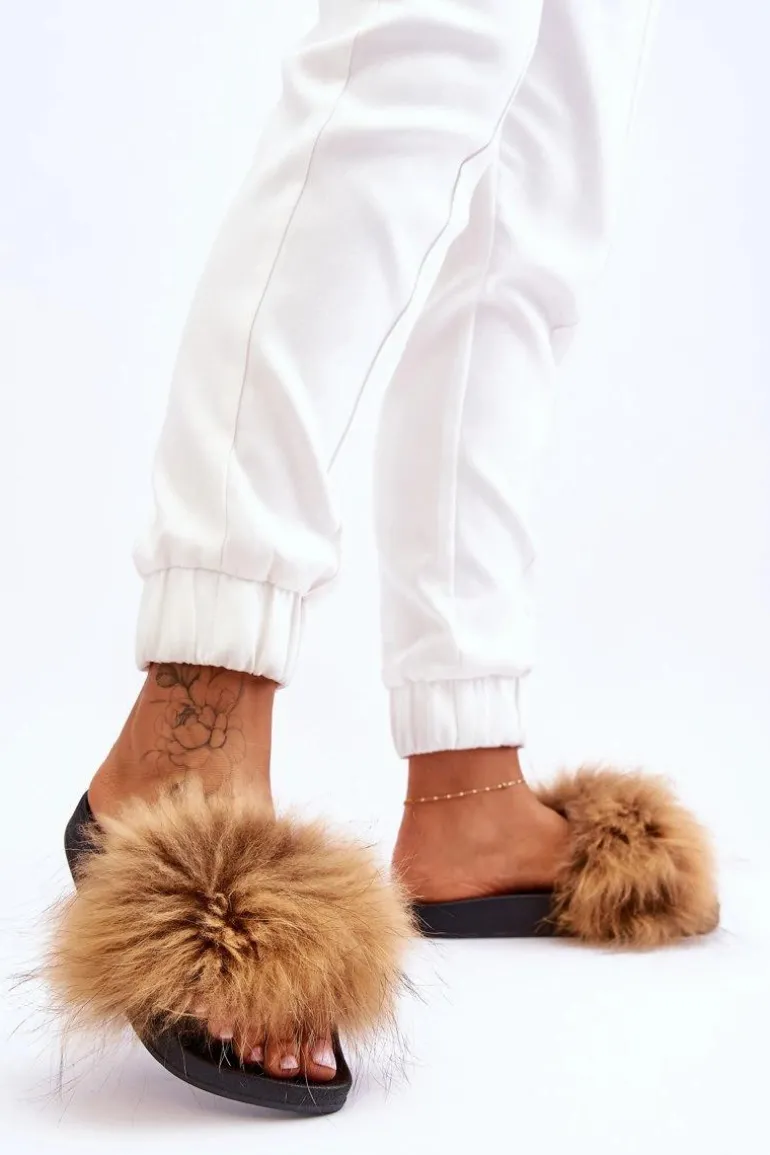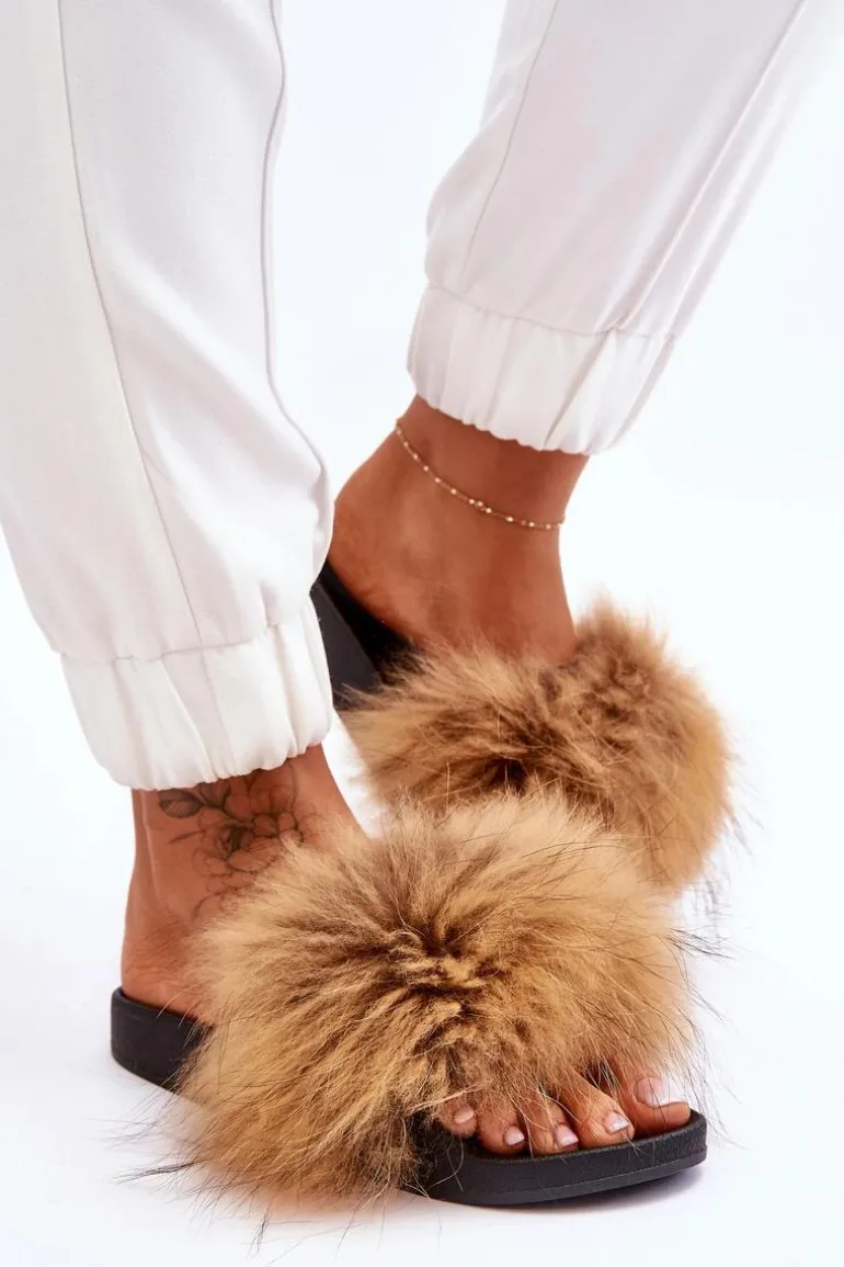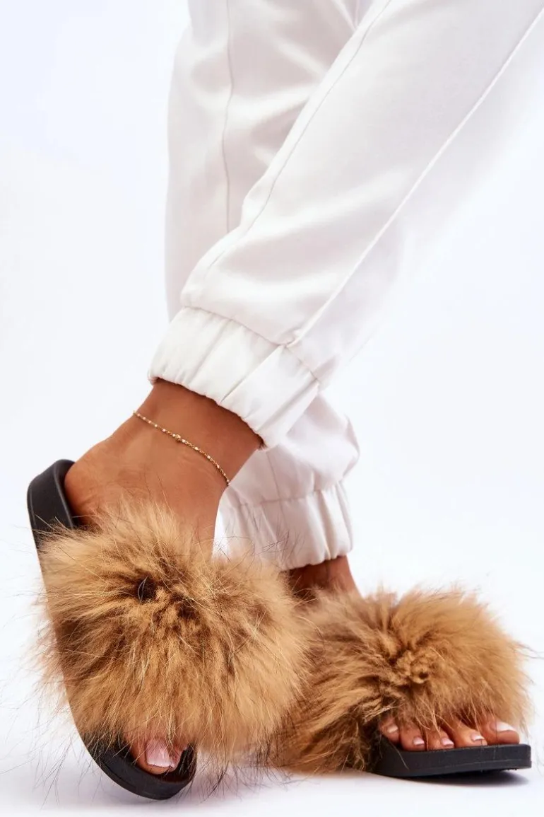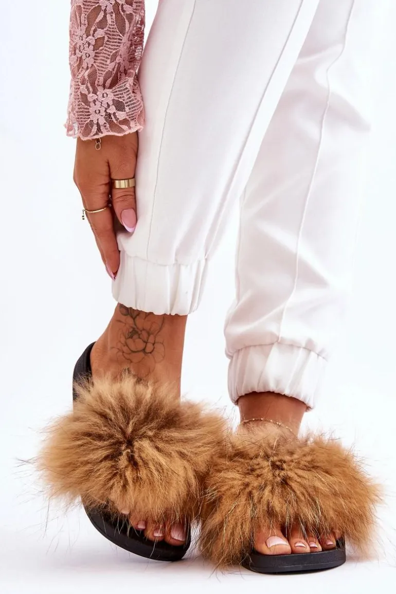Damskie Gumowe Klapki Z Futerkiem Brązowe Lucrece