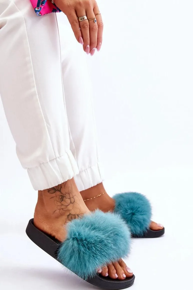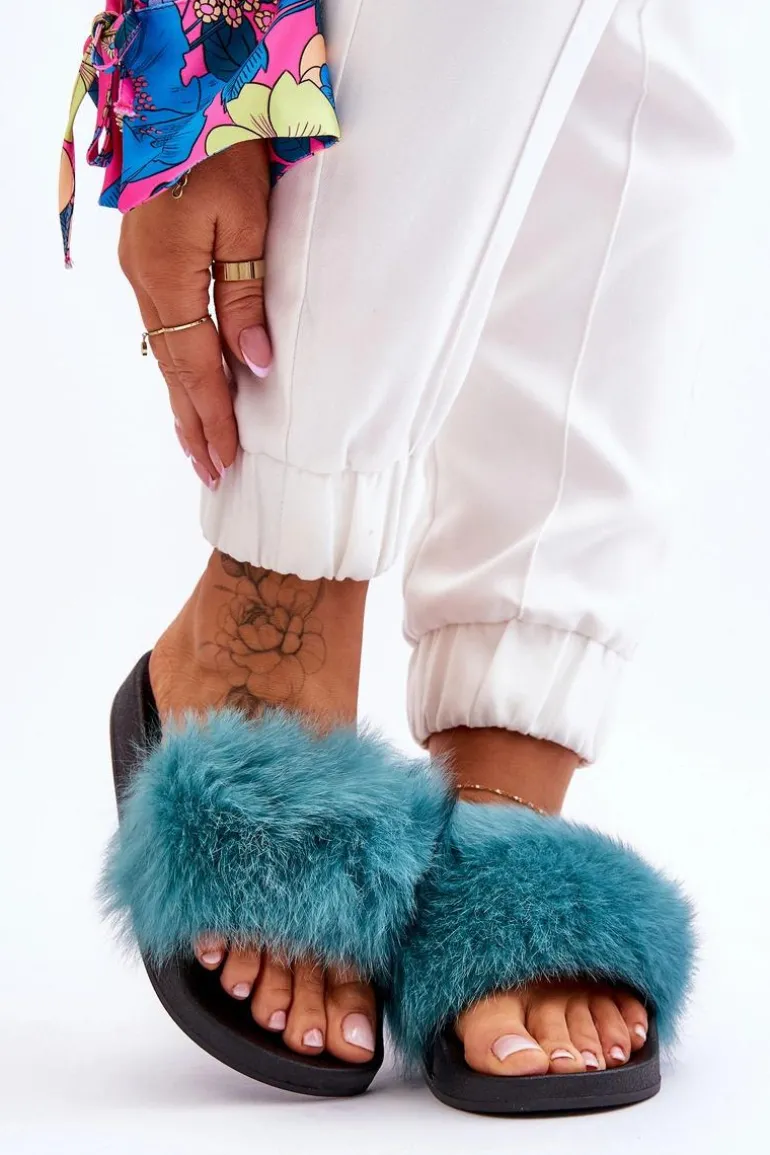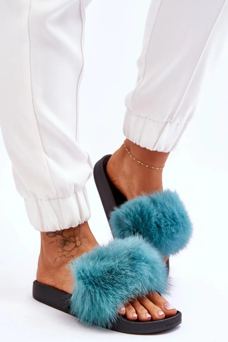 Damskie Gumowe Klapki Z Futerkiem Turkusowe Lucrece