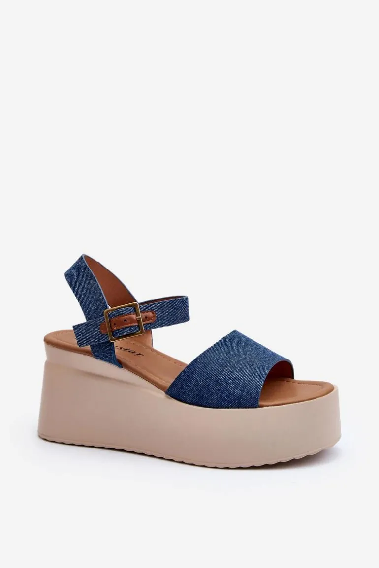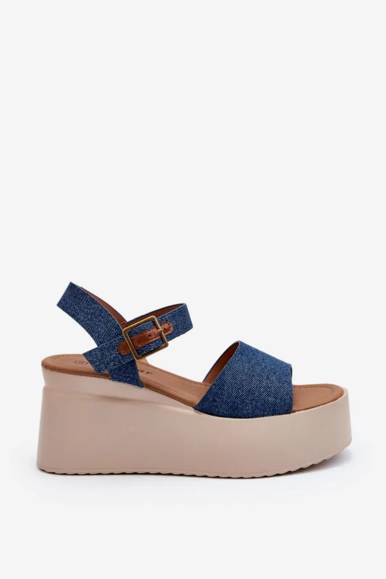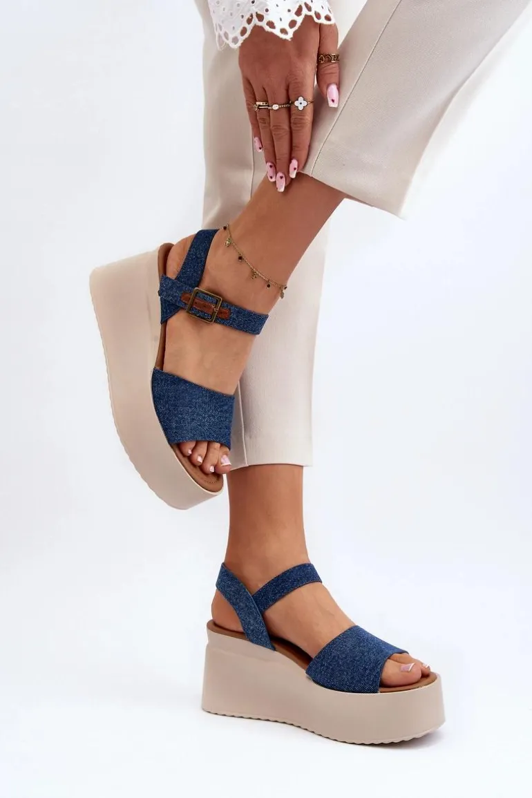 Sandały damskie wykonane z materiału tekstylnego. Osadzone na koturnie i platformie, co nie tylko dodaje im modnego wyglądu, ale także zapewnia stabilność podczas chodzenia. Zapinane na regulowany pasek ze sprzączką, łatwo dopasujesz je do swojej stopy. Przy wyborze rozmiaru prosimy sugerować się tabelą rozmiarów. Model ten będzie idealny na letnie spacery czy spotkania na świeżym powietrzu!