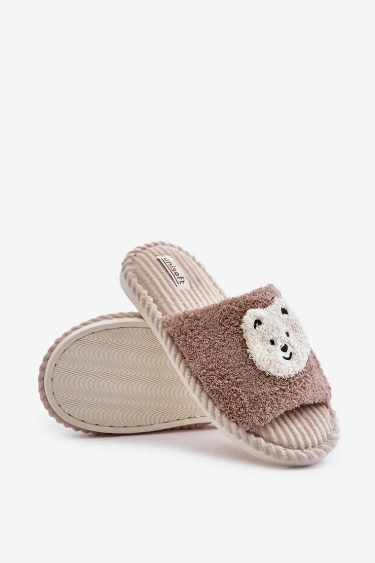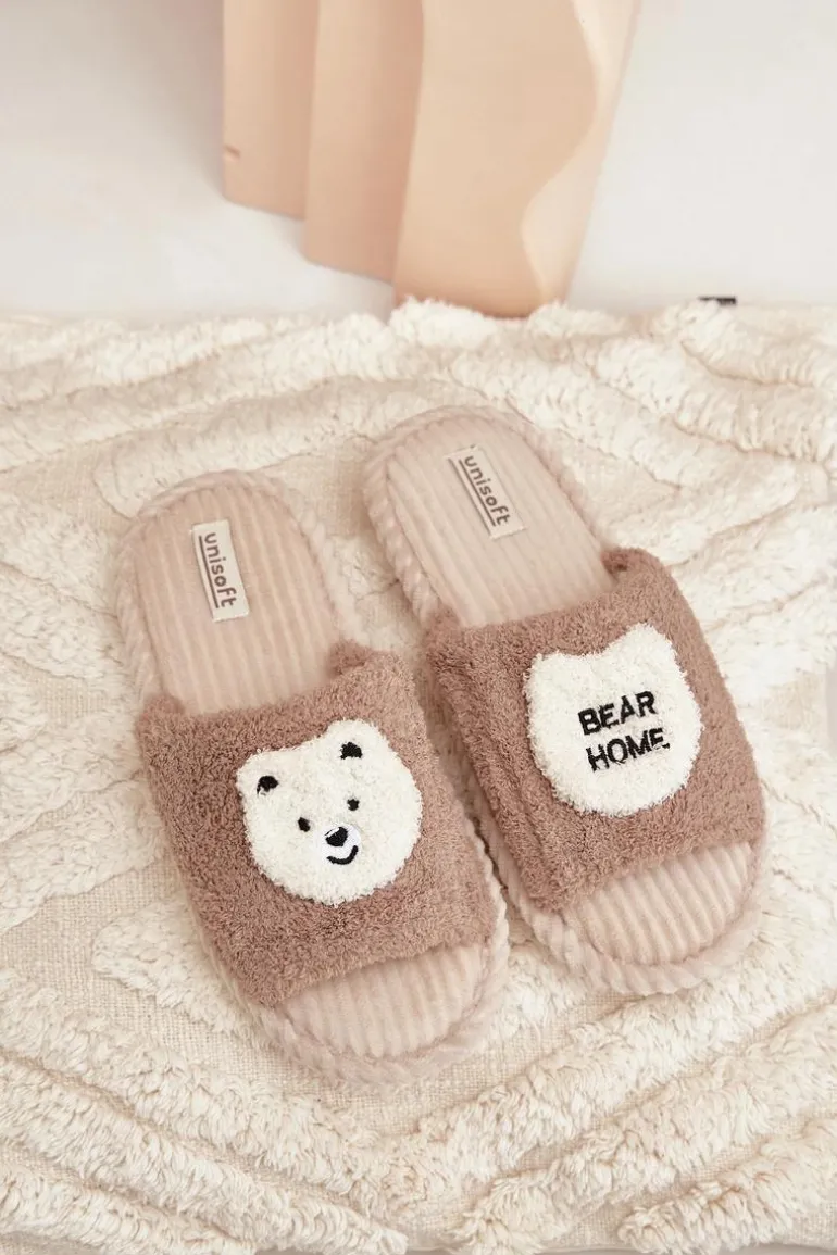 Przytulne kapcie na płaskiej, gumowej podeszwie to idealny wybór na chłodniejsze dni. Wykonane z miękkiego, sztucznego futerka zapewniają ciepło i wygodę. Z przodu kapci znajduje się urocza naszywka. Noski otwarte. Doskonałe na relaks w domowym zaciszu! Przy wyborze rozmiaru prosimy kierować się tabelą rozmiarów.