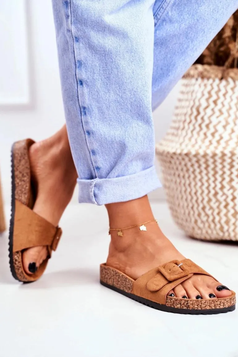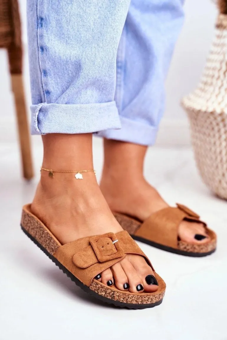 Damskie Klapki Brązowe Sprzączka Regulacja Rosaline