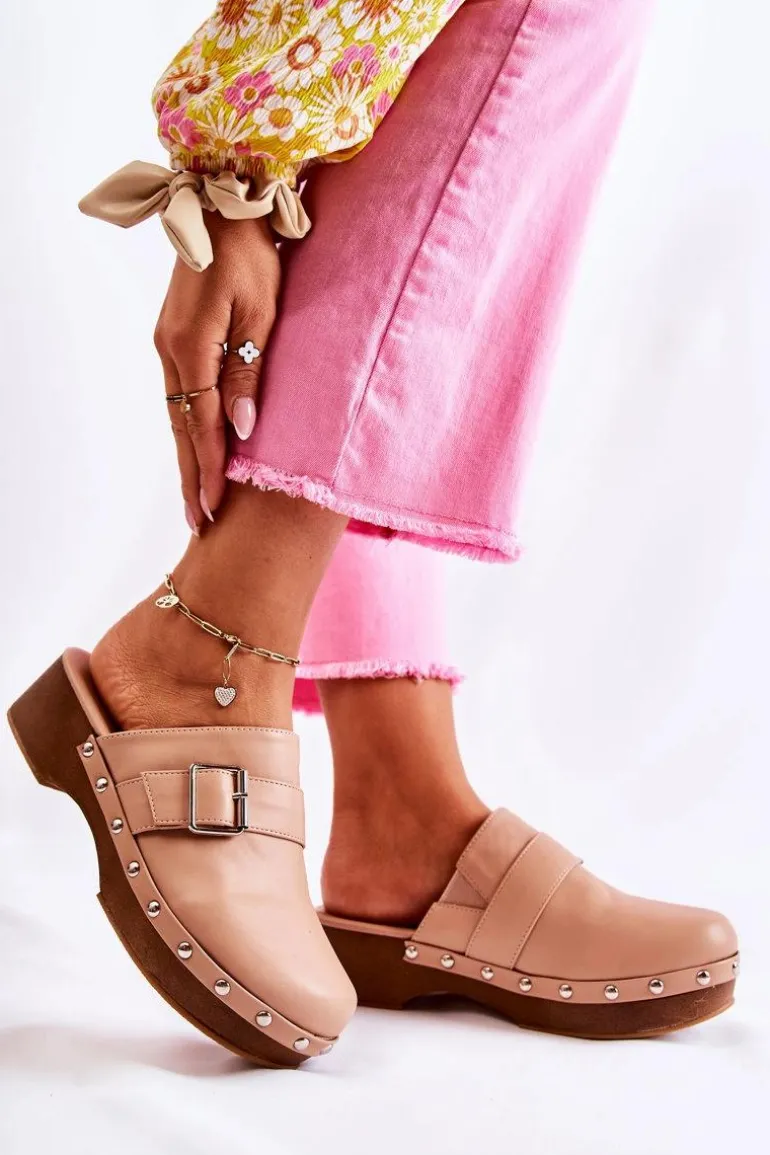 Damskie Klapki Chodaki Na Obcasie Beżowe Ivette