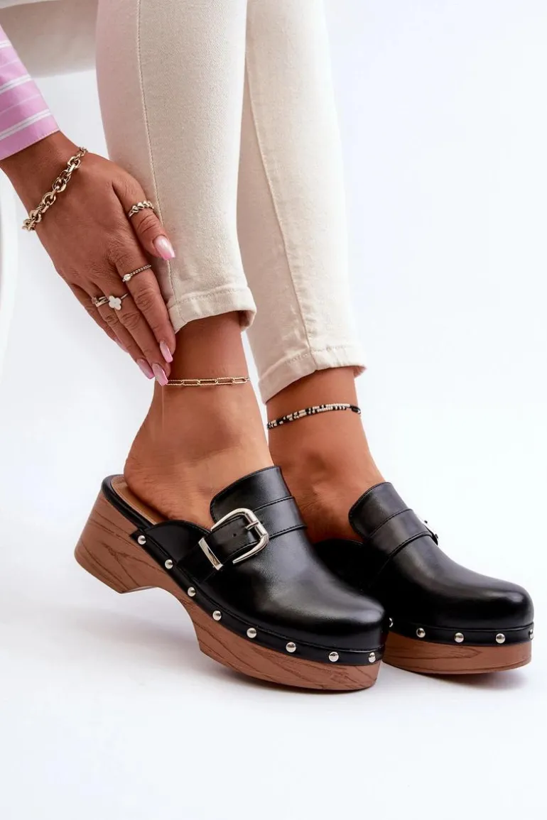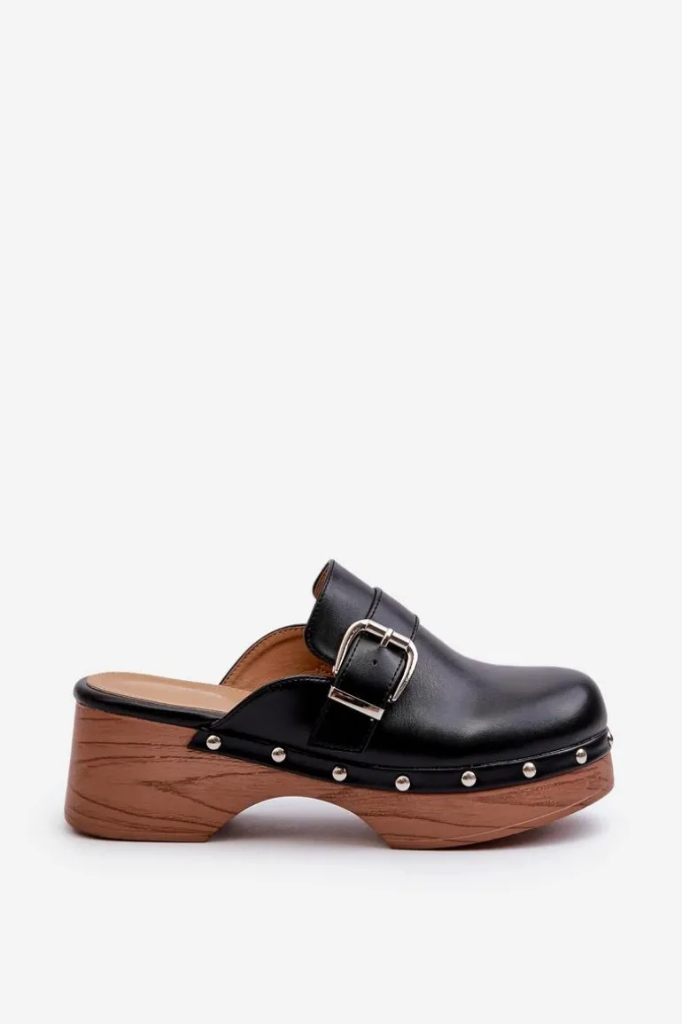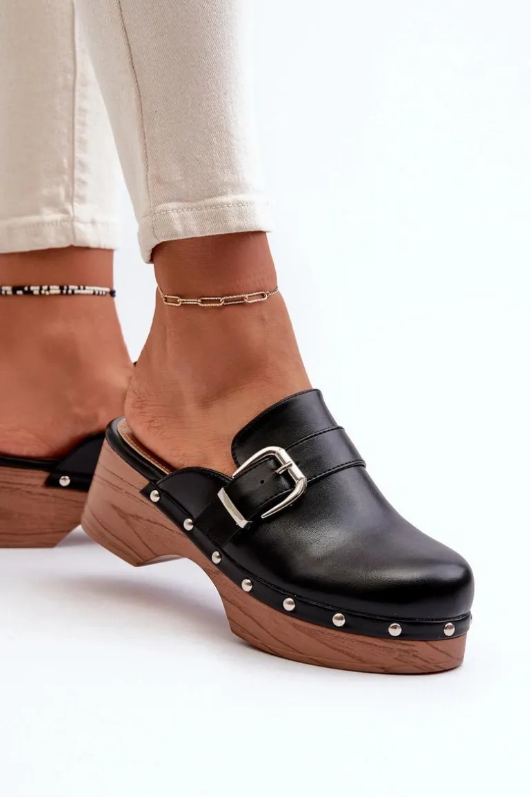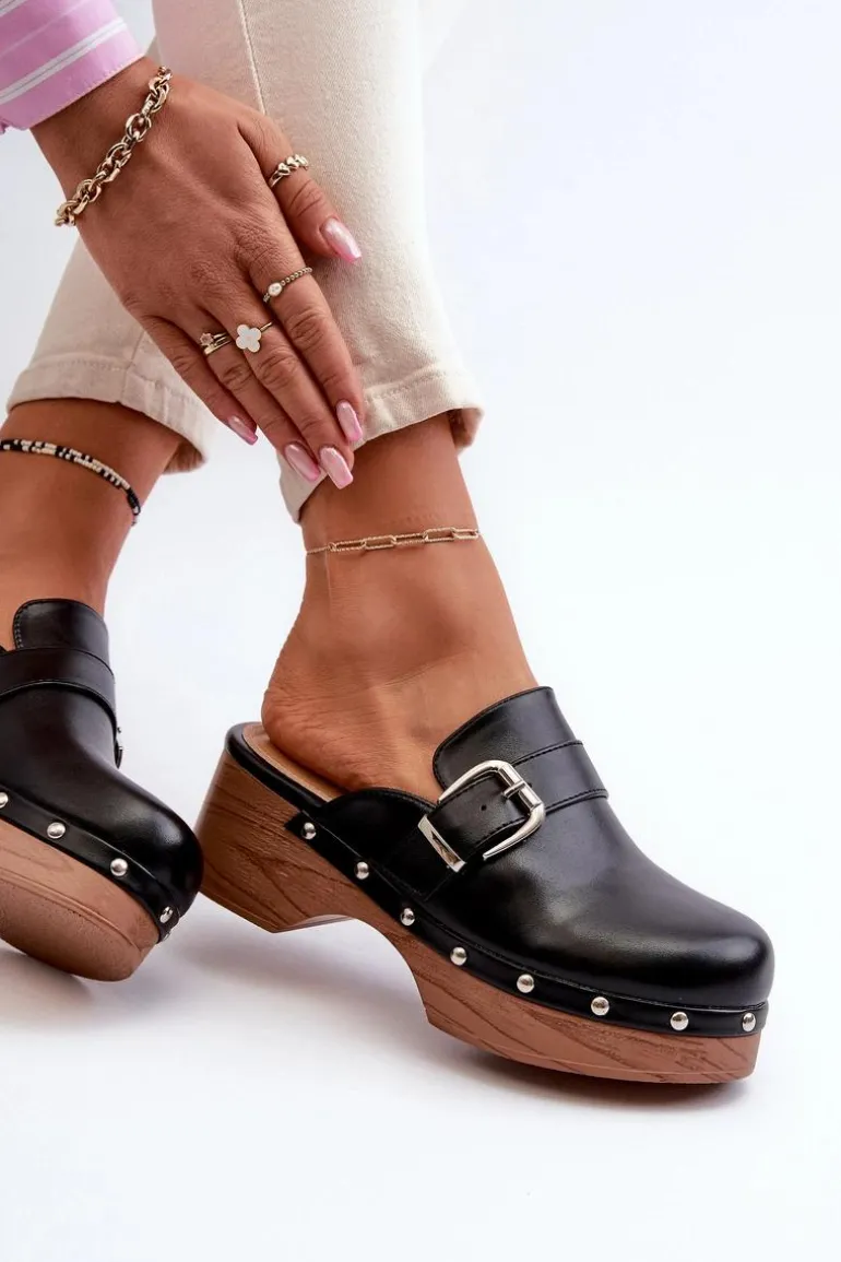 Damskie Klapki Chodaki Z Klamrą Czarne Seprilla