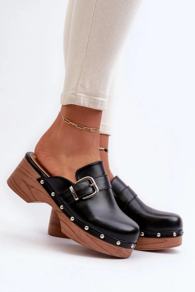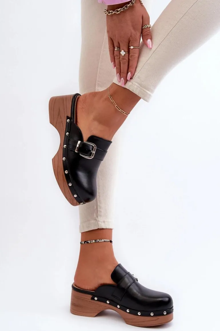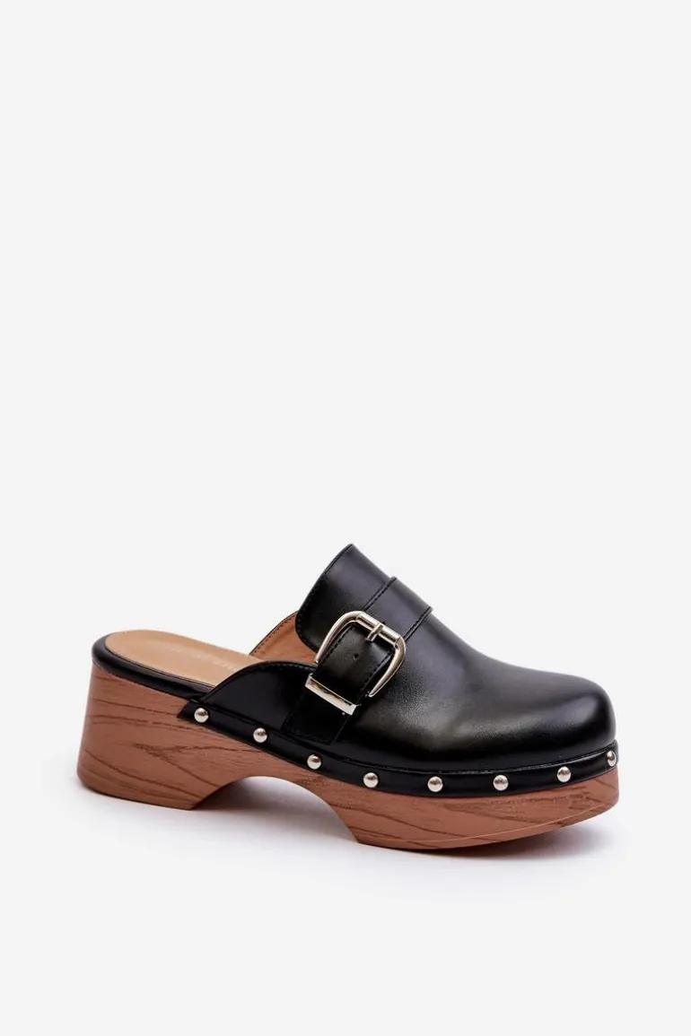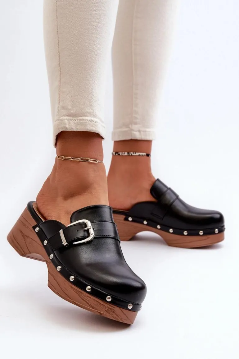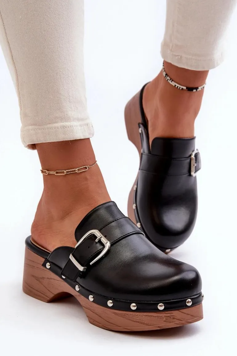 Damskie Klapki Chodaki Z Klamrą Czarne Seprilla