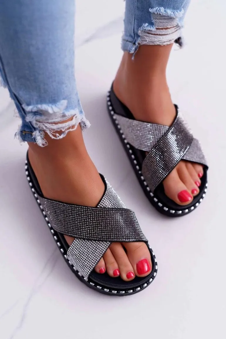 Damskie Klapki Czarne z Kryształkami Belmondo