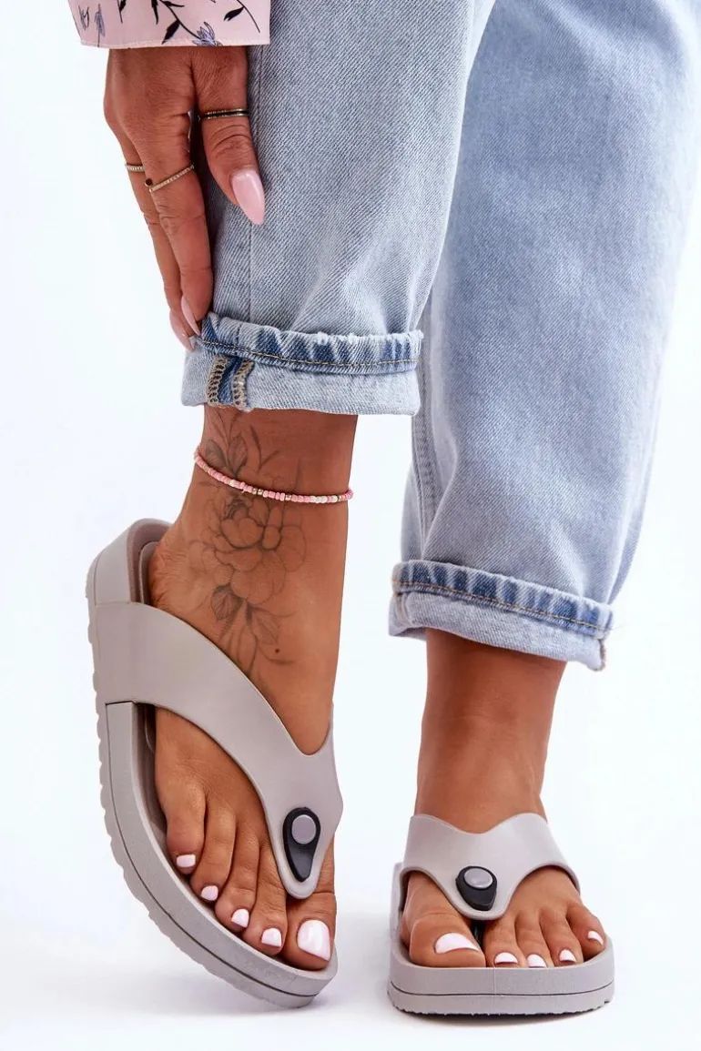 Damskie Klapki Japonki Na Platformie Szare Bellitta
