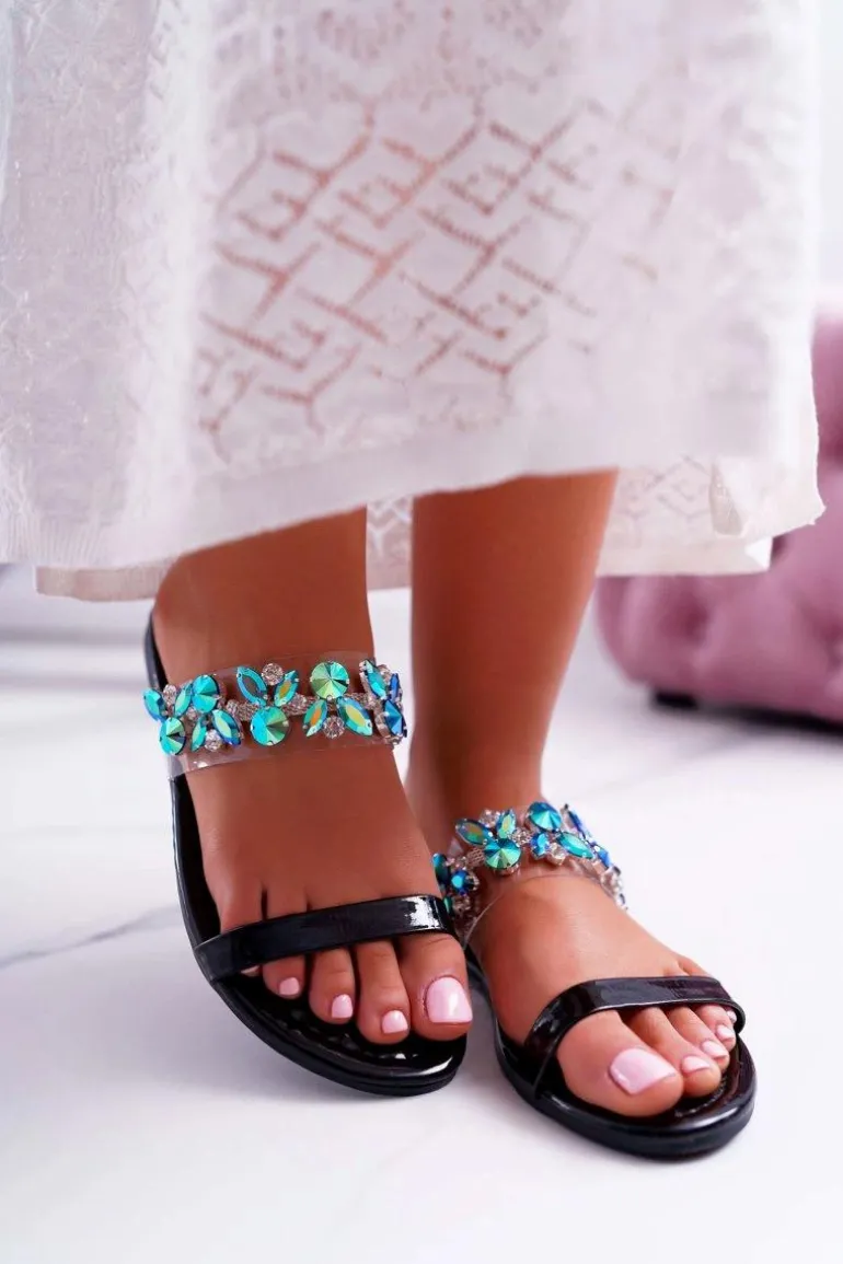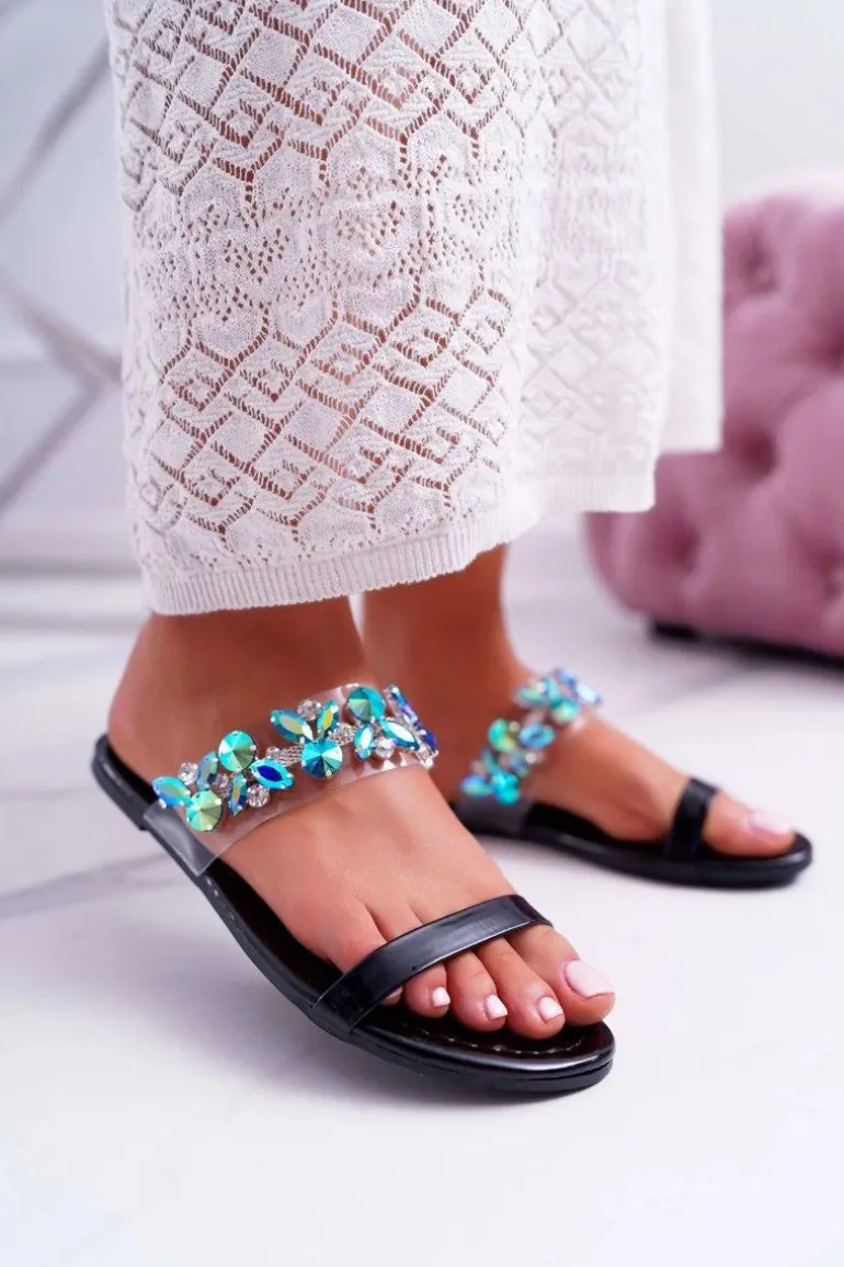 Damskie Klapki Lu Boo Eleganckie Z Cyrkoniami Czarne Elementary