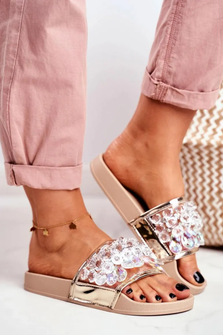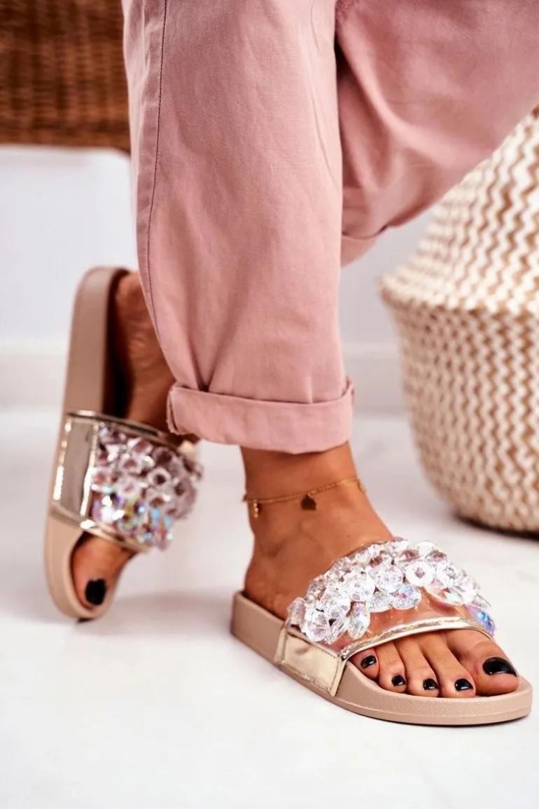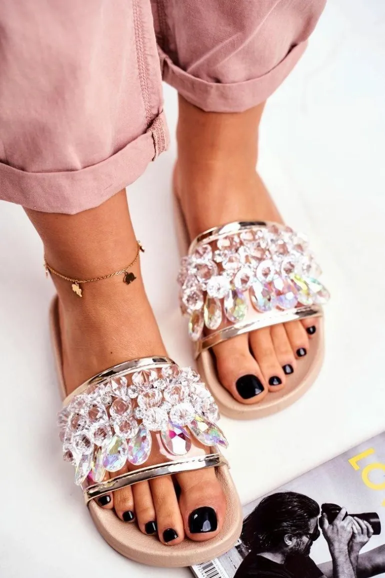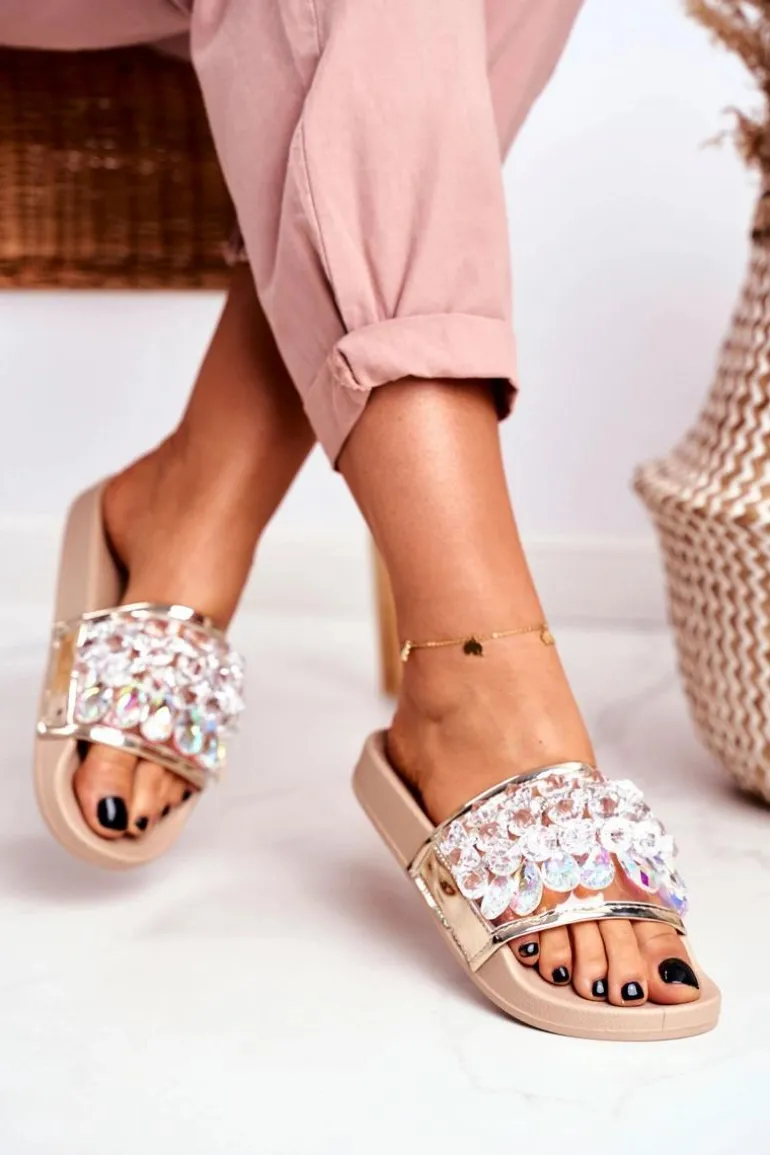 Damskie Klapki Lu Boo Kryształki Beżowe Bobbi