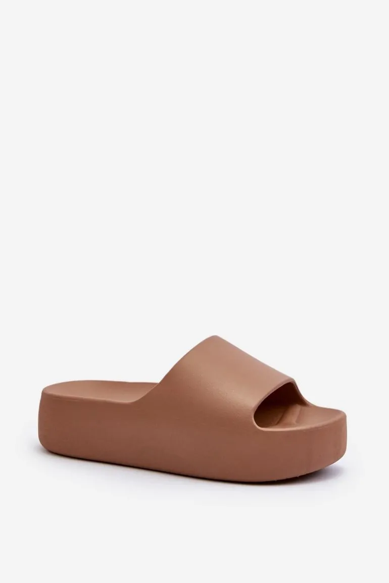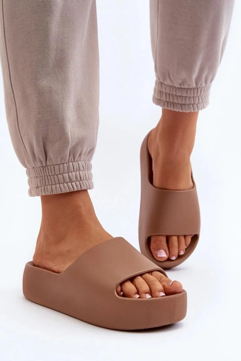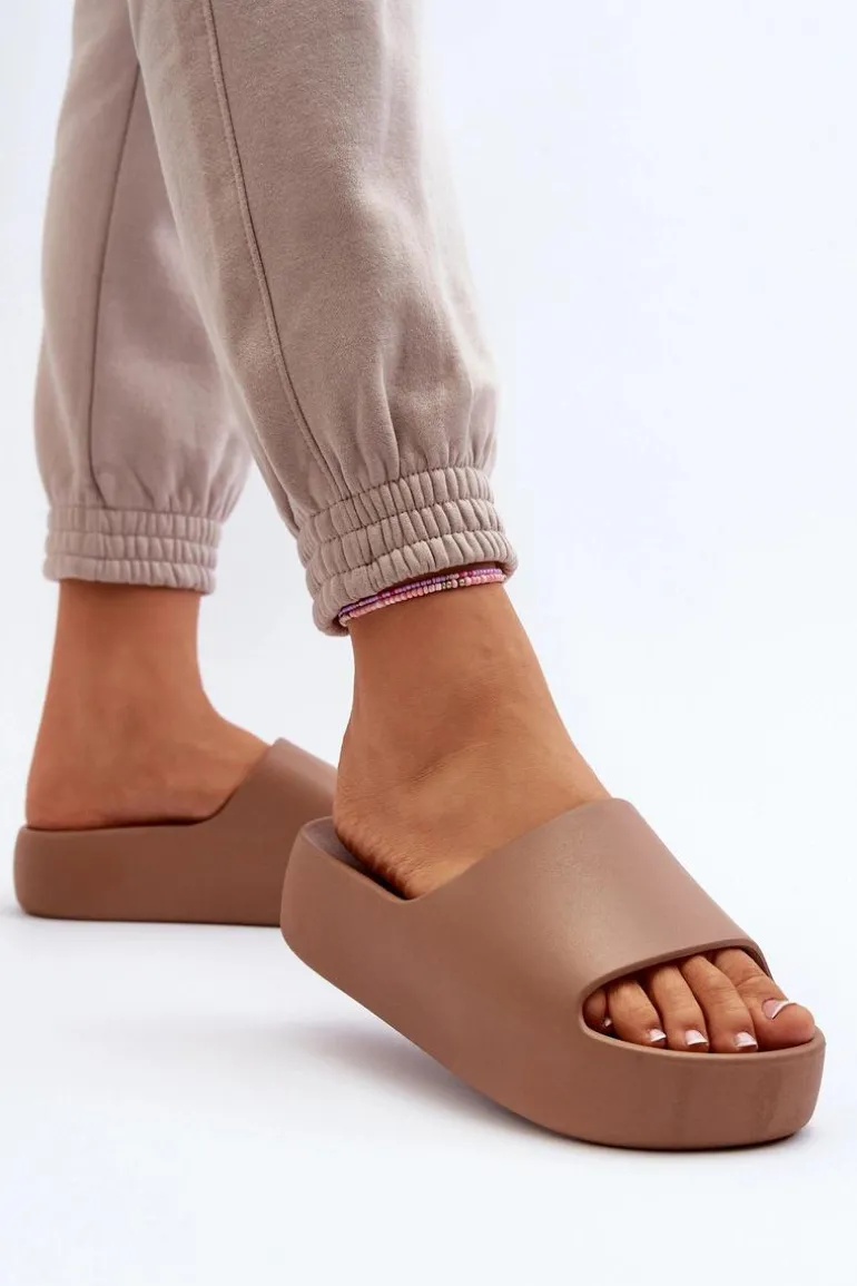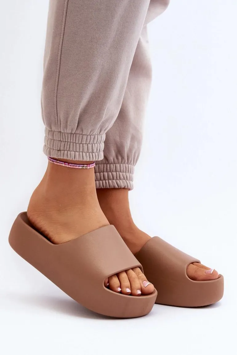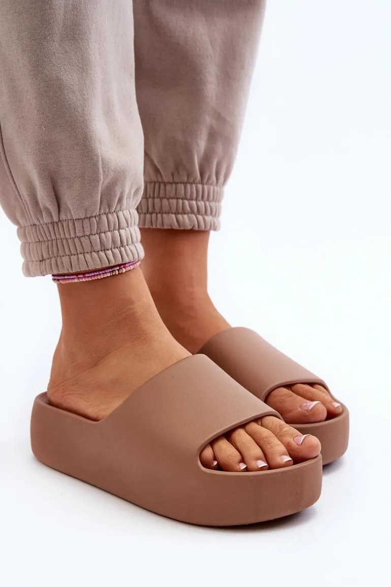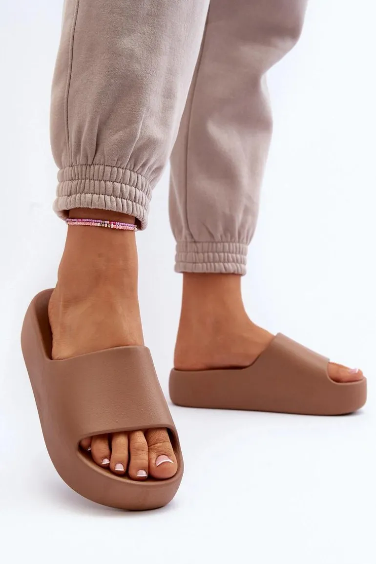 Damskie Klapki Na Grubej Podeszwie Brązowe Oreithano