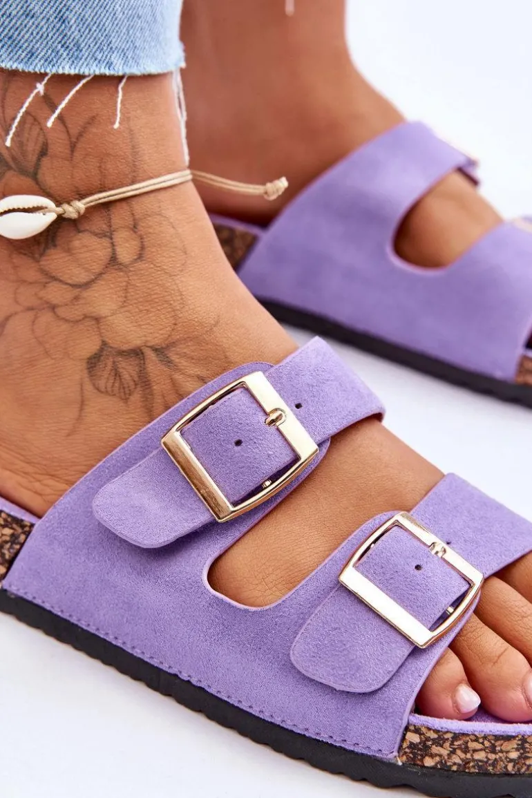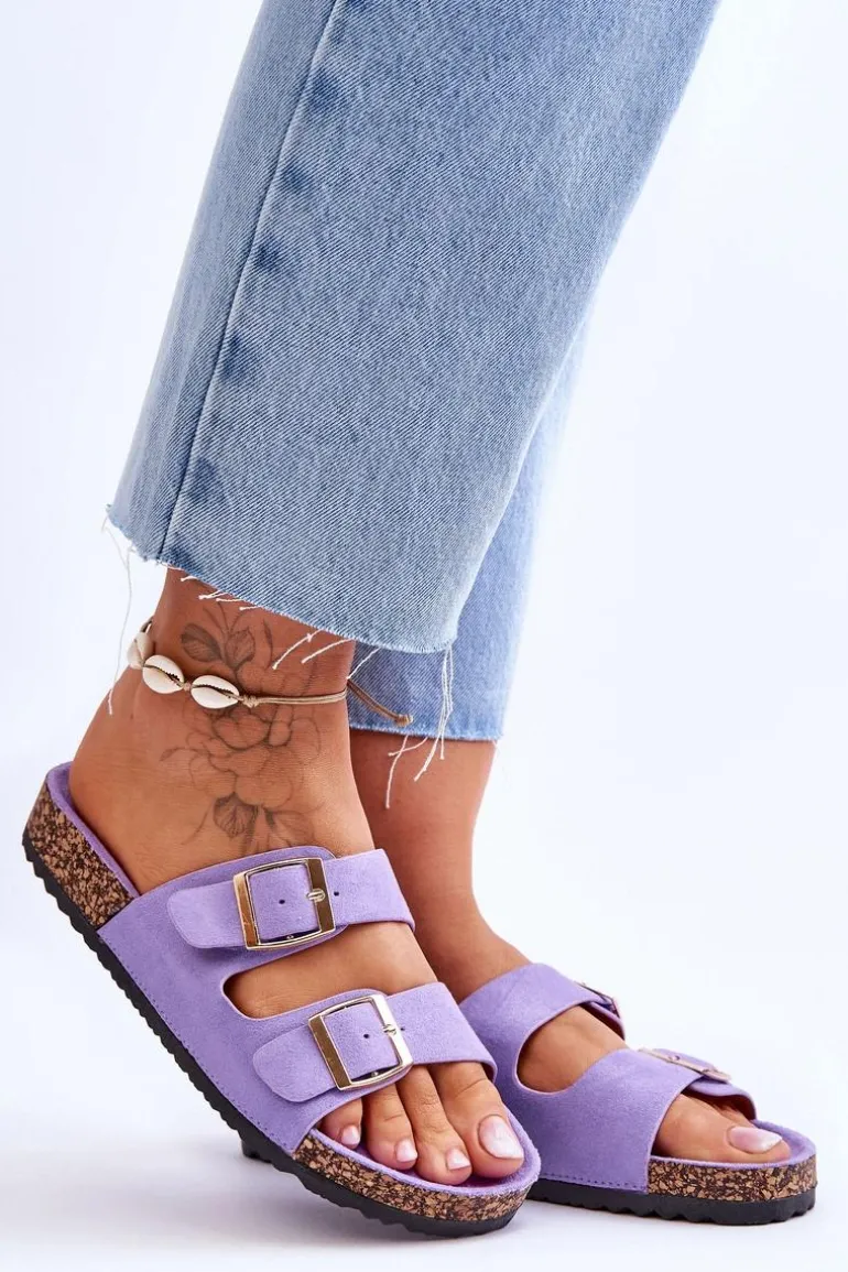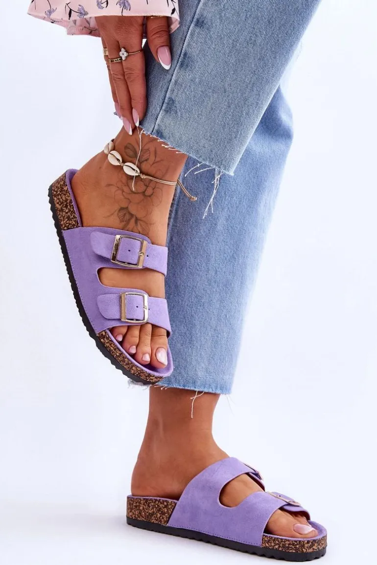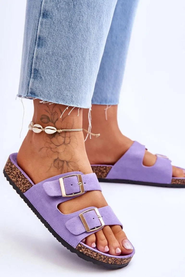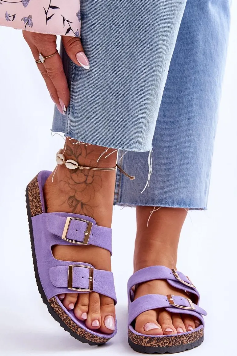 Damskie Klapki Na Korkowej Platformie Z Paskami Fioletowe Doretta