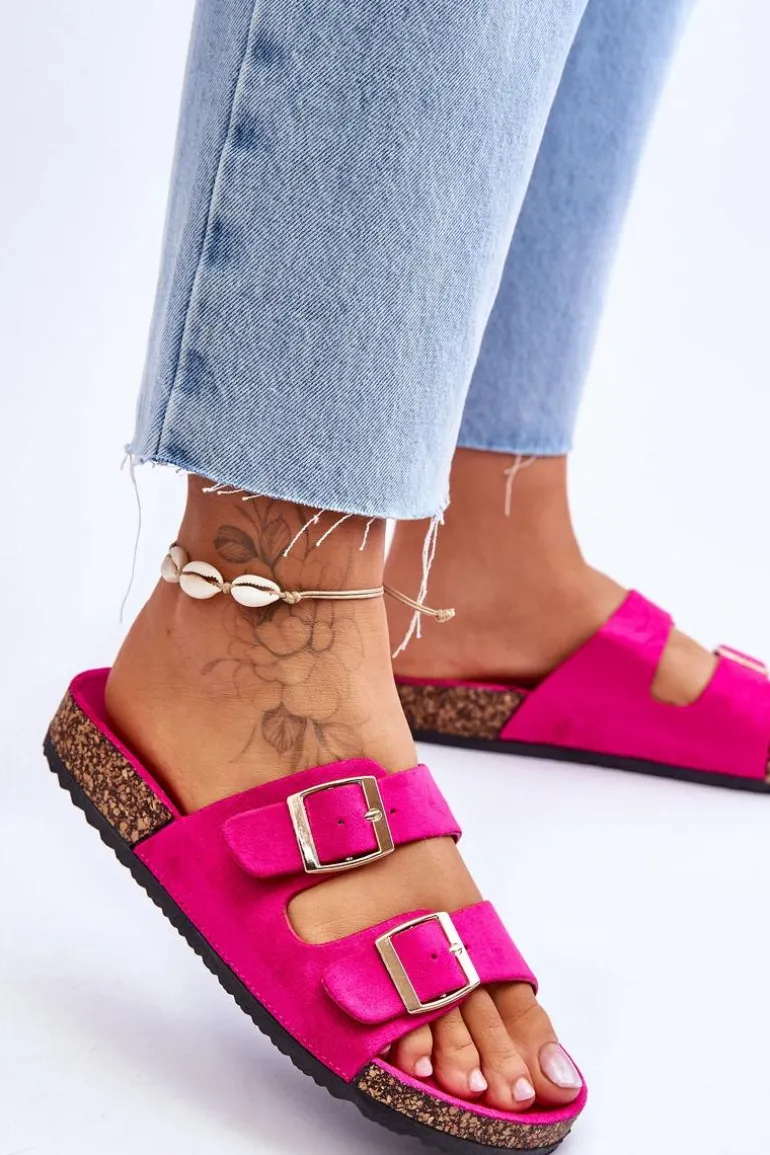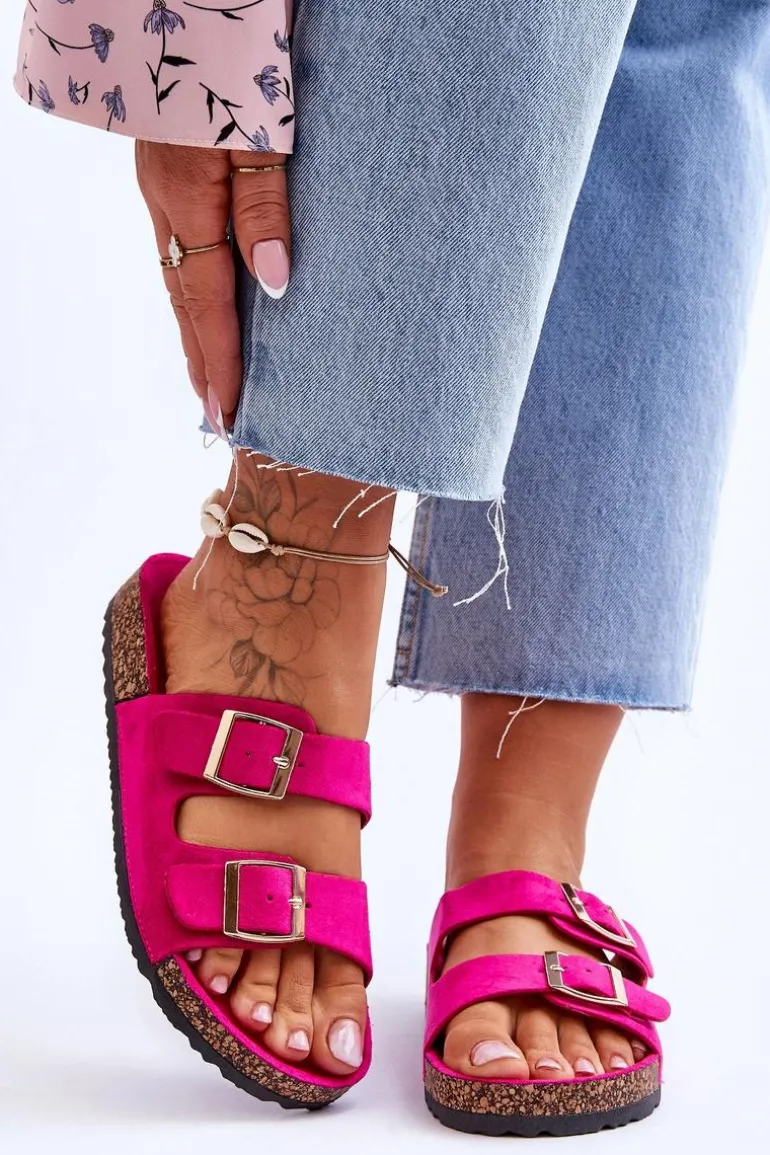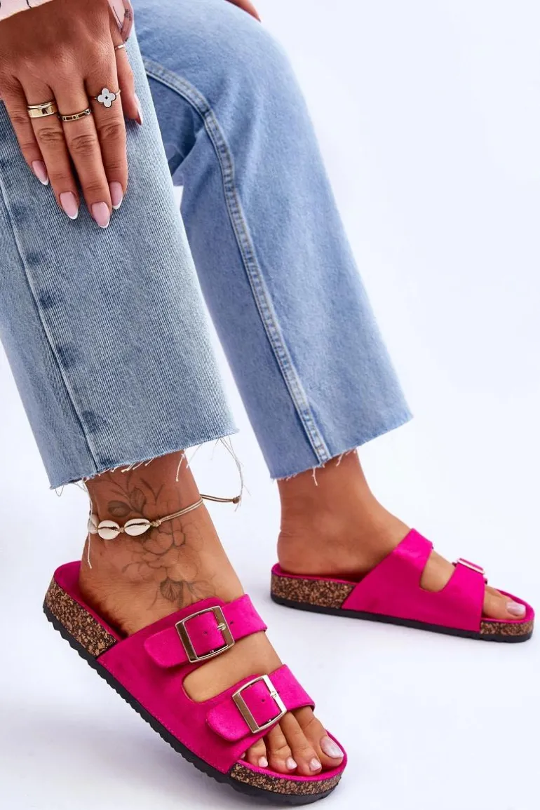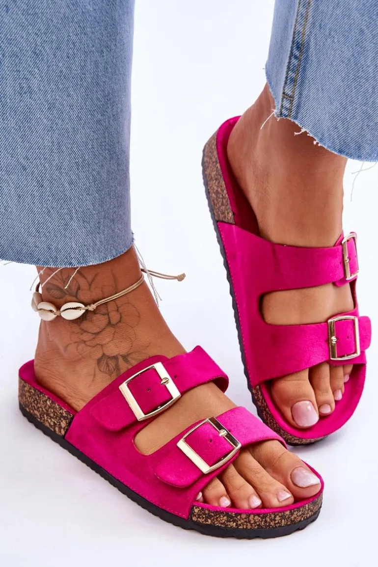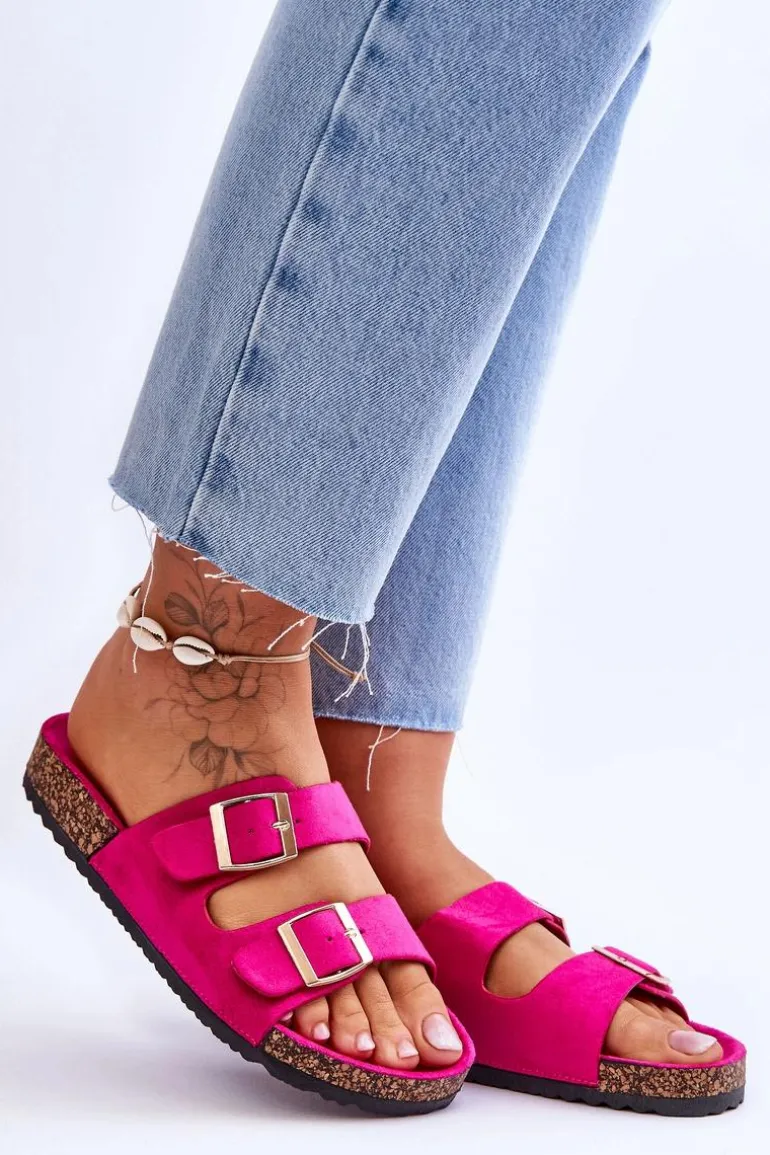 Damskie klapki zostały wykonane z miłego w dotyku eko zamszu. Posiadają ozdobne klamry z regulowanymi paskami. Model ten został osadzony na korkowej platformie. Idealne obuwie na letni sezon. Klapki te posiadają profilowaną, wygodną wkładkę. Koniecznie powinnaś je mieć! Przy wyborze rozmiaru prosimy sugerować się tabelą rozmiarów.