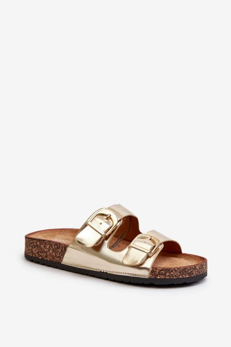 Damskie klapki zostały wykonane z eko skóry. Posiadają ozdobne klamry z regulowanymi paskami. Model ten został osadzony na korkowej platformie. Idealne obuwie na letni sezon. Klapki te posiadają profilowaną, wygodną wkładkę. Koniecznie powinnaś je mieć! Przy wyborze rozmiaru prosimy sugerować się tabelą rozmiarów.