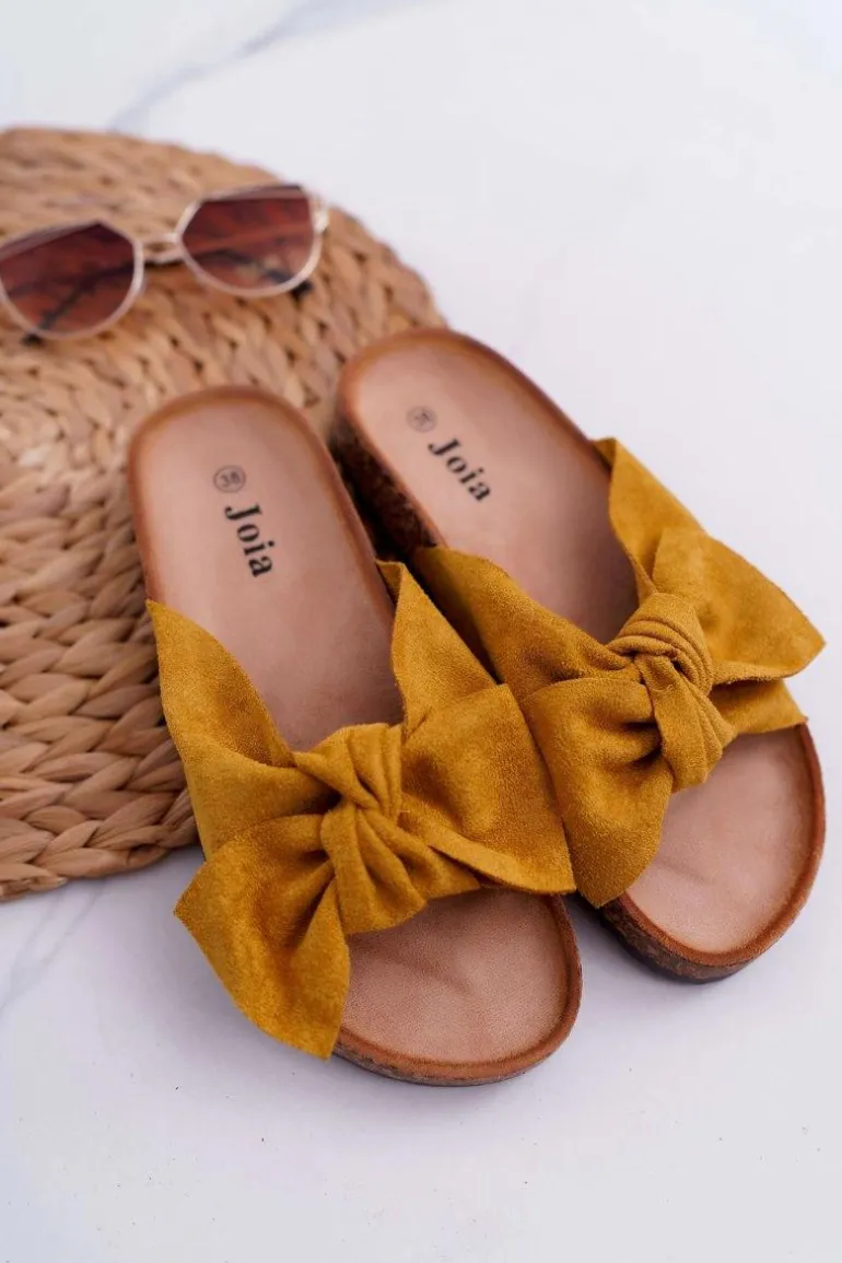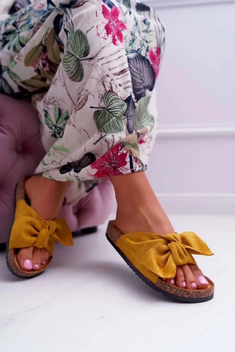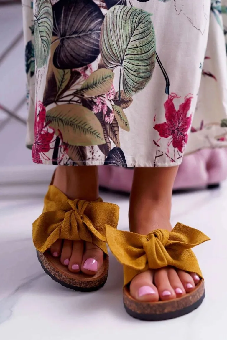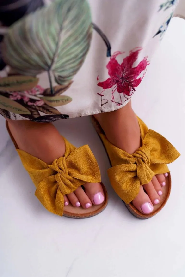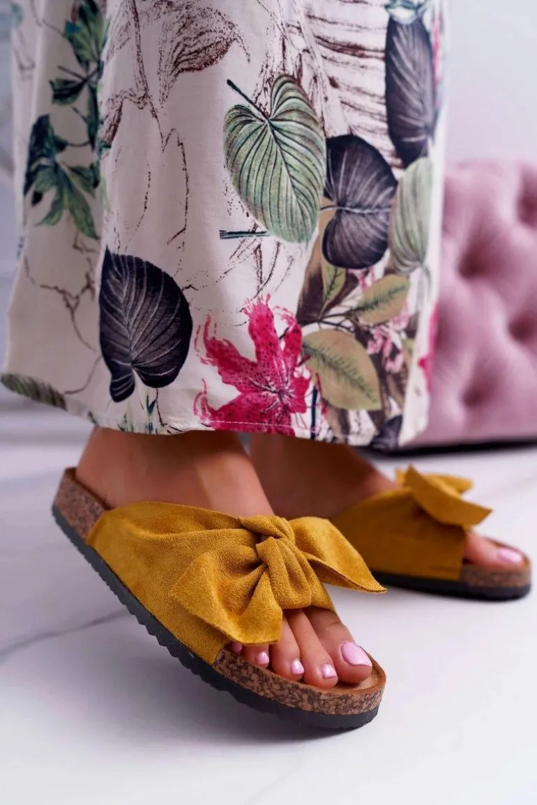 Damskie Klapki Na Korku Kokarda Żółte Randy