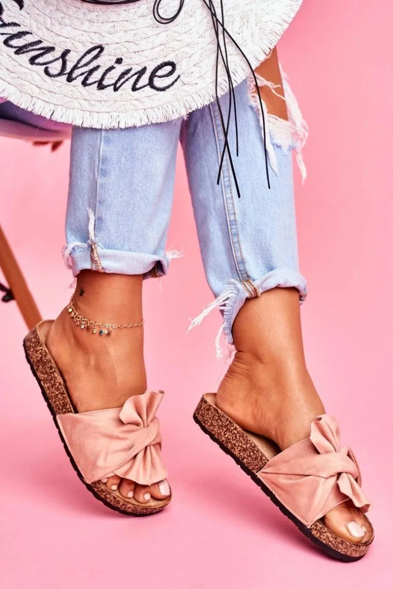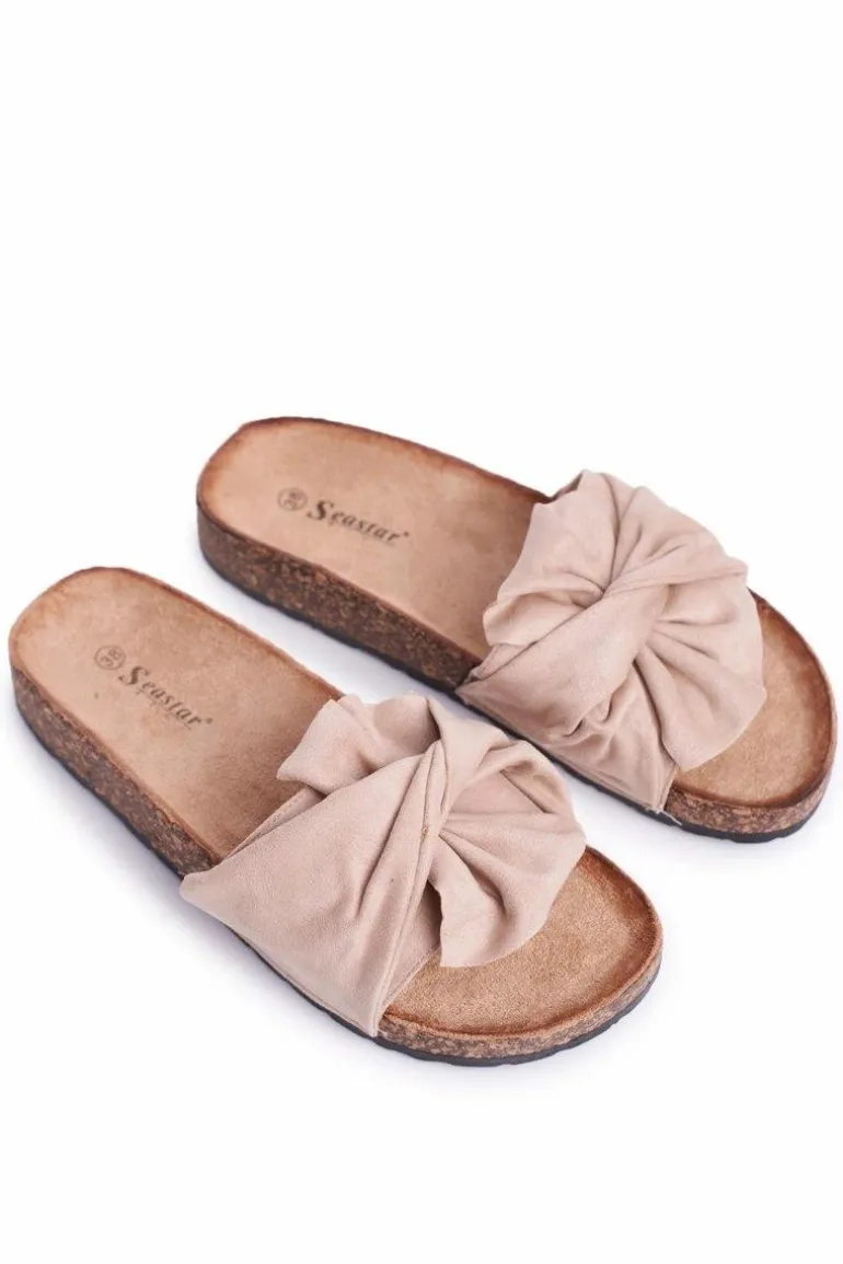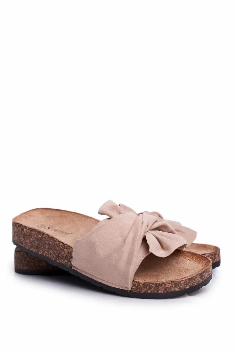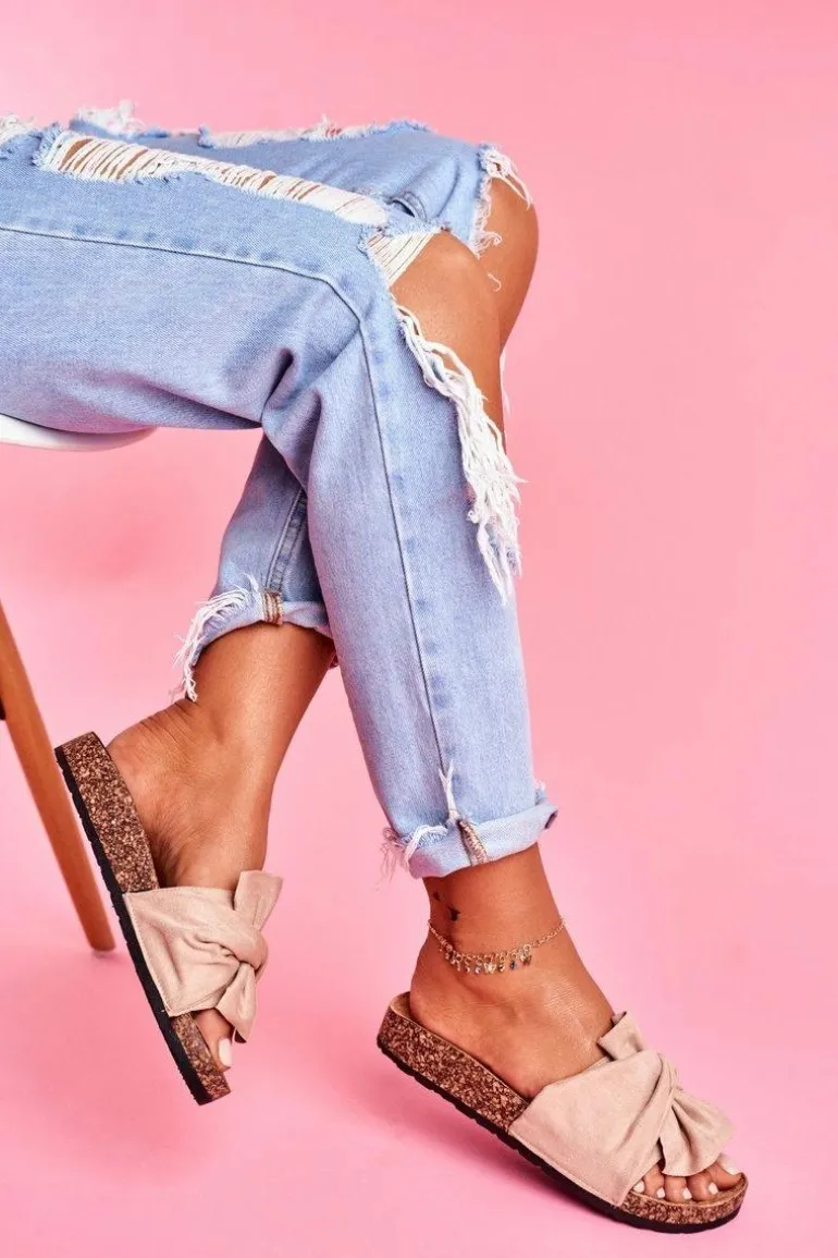 Damskie Klapki Na Korku Kokardki Beżowe Felis