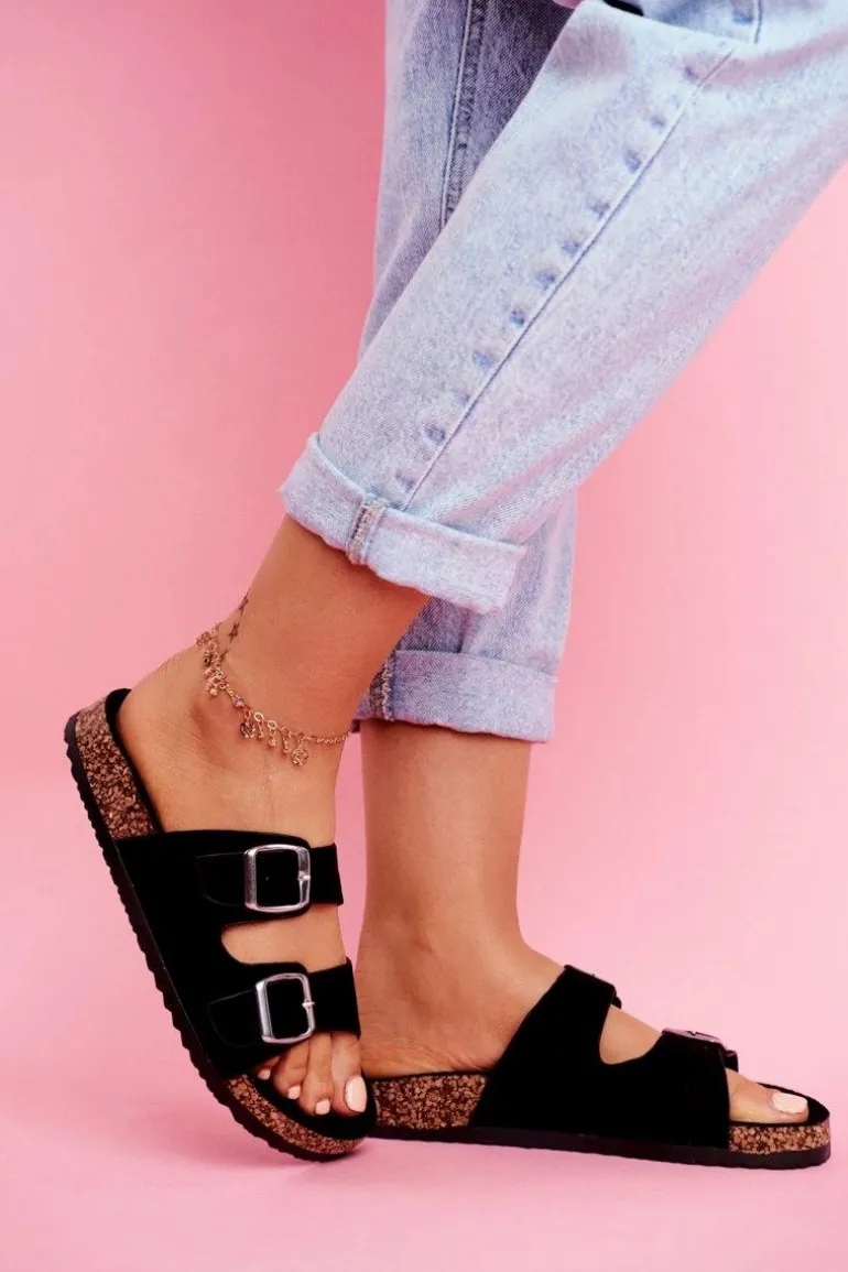 Damskie Klapki Na Korku Z Klamrami Czarne Si Senor