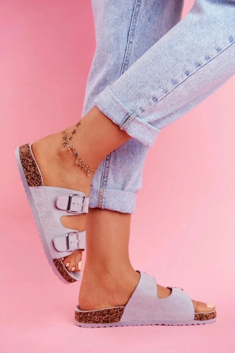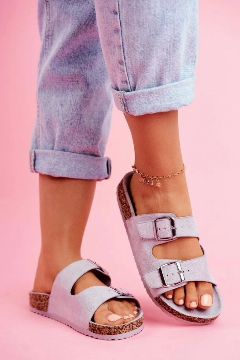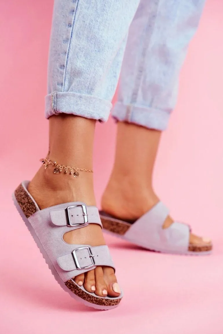 Damskie Klapki Na Korku Z Klamrami Szare Si Senor