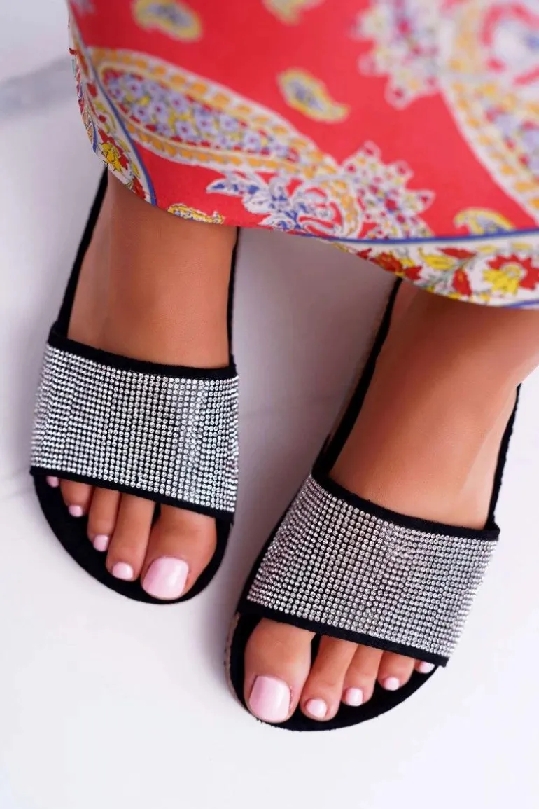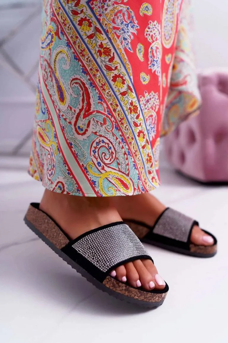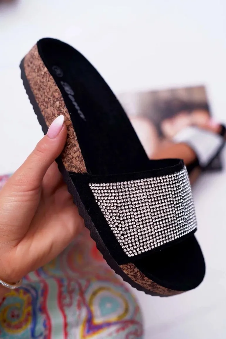 Damskie Klapki Na Korku Z Kryształkami Czarne Do It!